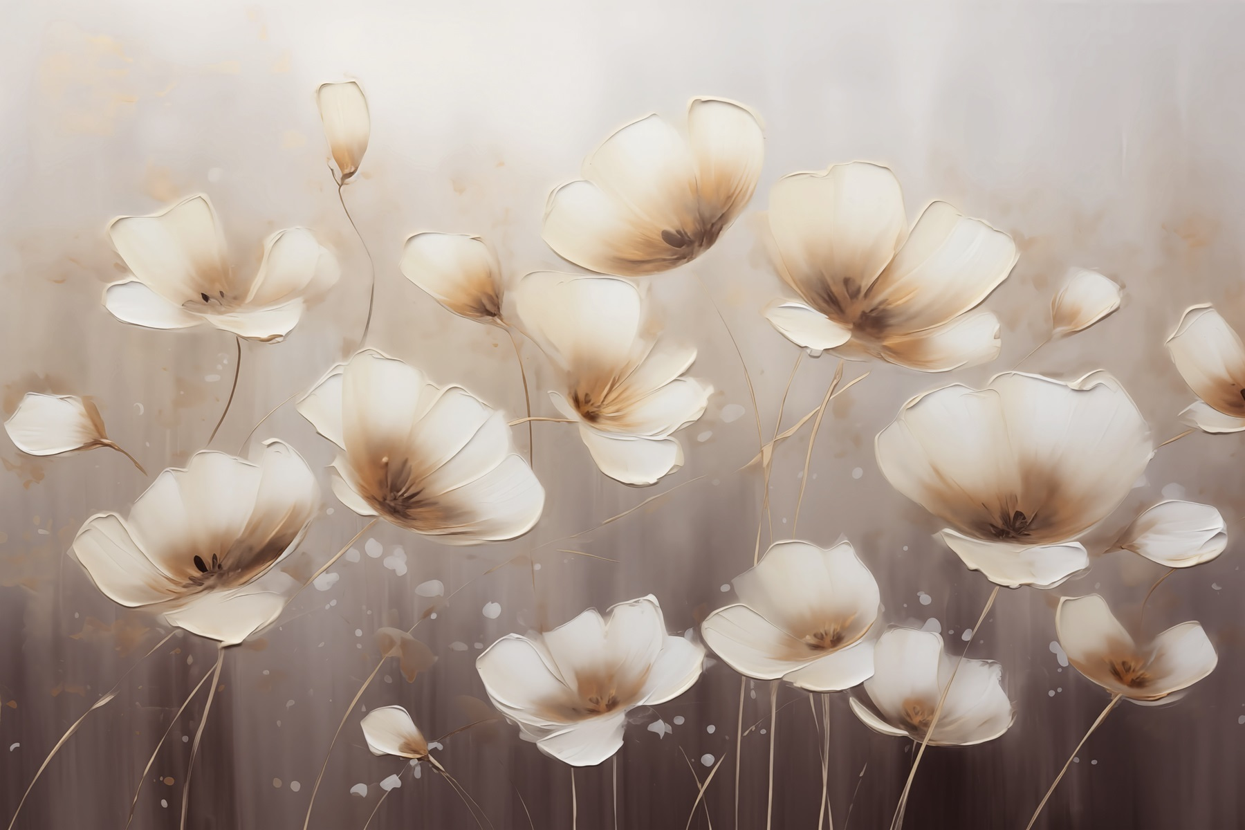 Verleihen Sie Ihrem Raum Leben mit dieser atemberaubenden Wandtapete, auf der zarte Blumen vor einem sanften, weißen Hintergrund blühen. Es ist wie ein sanftes Flüstern des Frühlings, auch wenn es draußen schneit. Stellen Sie sich vor, Sie wachen jeden Morgen mit diesen wunderschönen Blüten auf, die Sie mit ihrem eleganten Charme aus dem Bett locken. Perfekt für jeden Raum, egal ob es sich um einen gemütlichen Wohnbereich oder ein ruhiges Schlafzimmer handelt. Dieses Aquarelldesign verleiht Ihren Wänden einen Hauch von moderner und doch zeitloser Eleganz und lässt sie wie einen bezaubernden Garten wirken. Wer hätte gedacht, dass eine Tapete so viel Wärme und Gemütlichkeit ausstrahlen kann?