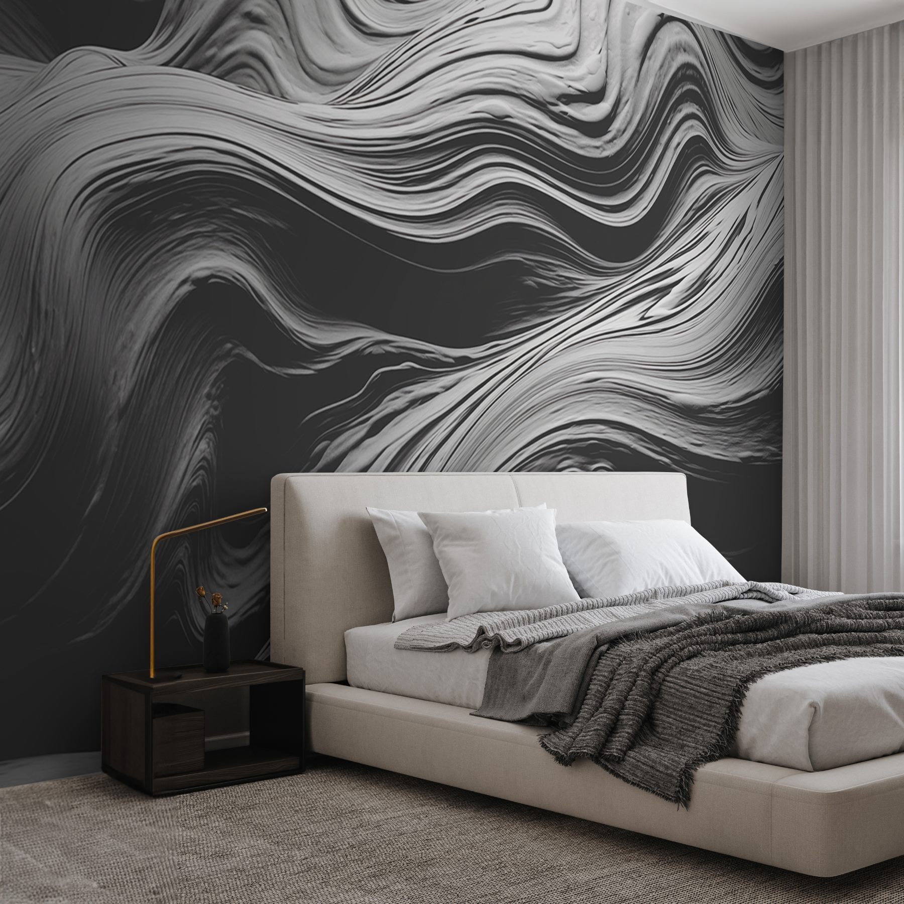 Transform any space with this mesmerizing wall mural, “Fluid Patterns in Monochrome Texture.” Imagine stepping into a room where the gentle waves of swirling textures invite you to chill out. It’s like a calming sea of gray—perfect for creating a modern, laid-back vibe. Friends will want to know where you found such a unique piece. It’s versatile too! Whether it’s a cozy reading nook or a striking accent wall, it adds an instant touch of artistry. And honestly, who wouldn’t want to feel like they’ve got a piece of contemporary art right at home? Subtle yet captivating, this mural has the charm to keep you staring—perfect for moments of inspiration… or just daydreaming!