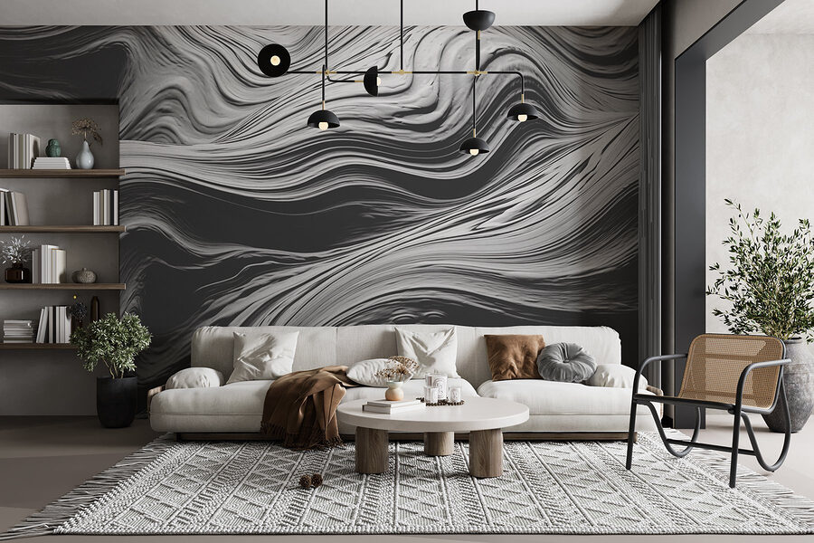Verwandeln Sie jeden Raum mit dieser faszinierenden Wandtapete „Fluid Patterns in Monochrome Texture”. Stellen Sie sich vor, Sie betreten einen Raum, in dem die sanften Wellen wirbelnder Texturen Sie zum Entspannen einladen. Es ist wie ein beruhigendes Meer aus Grau – perfekt, um eine moderne, entspannte Atmosphäre zu schaffen. Ihre Freunde werden wissen wollen, wo Sie dieses einzigartige Stück gefunden haben. Es ist außerdem vielseitig einsetzbar! Ob in einer gemütlichen Leseecke oder als auffällige Akzentwand – es verleiht jedem Raum sofort einen Hauch von Kunst. Und mal ehrlich, wer würde nicht gerne das Gefühl haben, ein Stück zeitgenössischer Kunst direkt zu Hause zu haben? Diese Wandtapete ist subtil und doch faszinierend und hat den Charme, den man nicht aus den Augen lassen kann – perfekt für Momente der Inspiration … oder einfach nur zum Tagträumen!