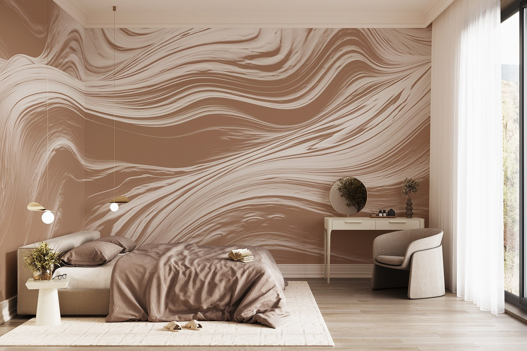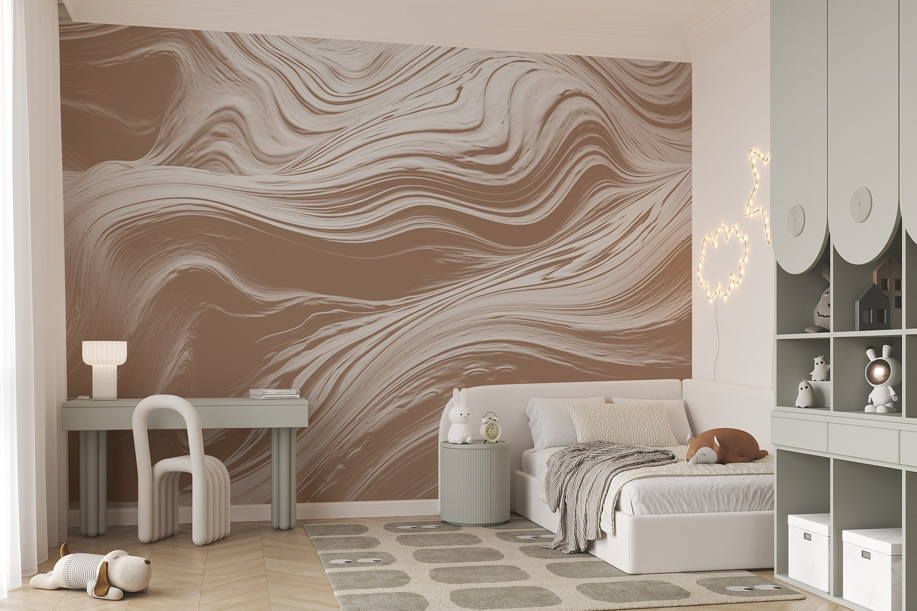 Verwandeln Sie jeden Raum mit dieser bezaubernden Fototapete, die weiße Wirbel auf einem weichen, erdigen Hintergrund zeigt. Es bringt einen Hauch von moderner Eleganz, die sowohl entspannt als auch stilvoll wirkt. Stellen Sie sich vor, Sie betreten einen Raum, in dem die Wände in sanften Wellen zu fließen scheinen – es ist fast wie ein Raum zum Träumen. Perfekt für einen Wohnbereich oder ein ruhiges Schlafzimmer, lädt der subtile Charme dieses Wandbildes zum Innehalten ein. Die Gäste werden es nicht mehr verlassen wollen! Außerdem ist es so einfach zu montieren, dass Sie vielleicht sogar noch Zeit finden, nebenbei ein paar Kekse zu backen. Denn wer wünscht sich nicht einen gemütlichen Rückzugsort, der Freude bereitet?
