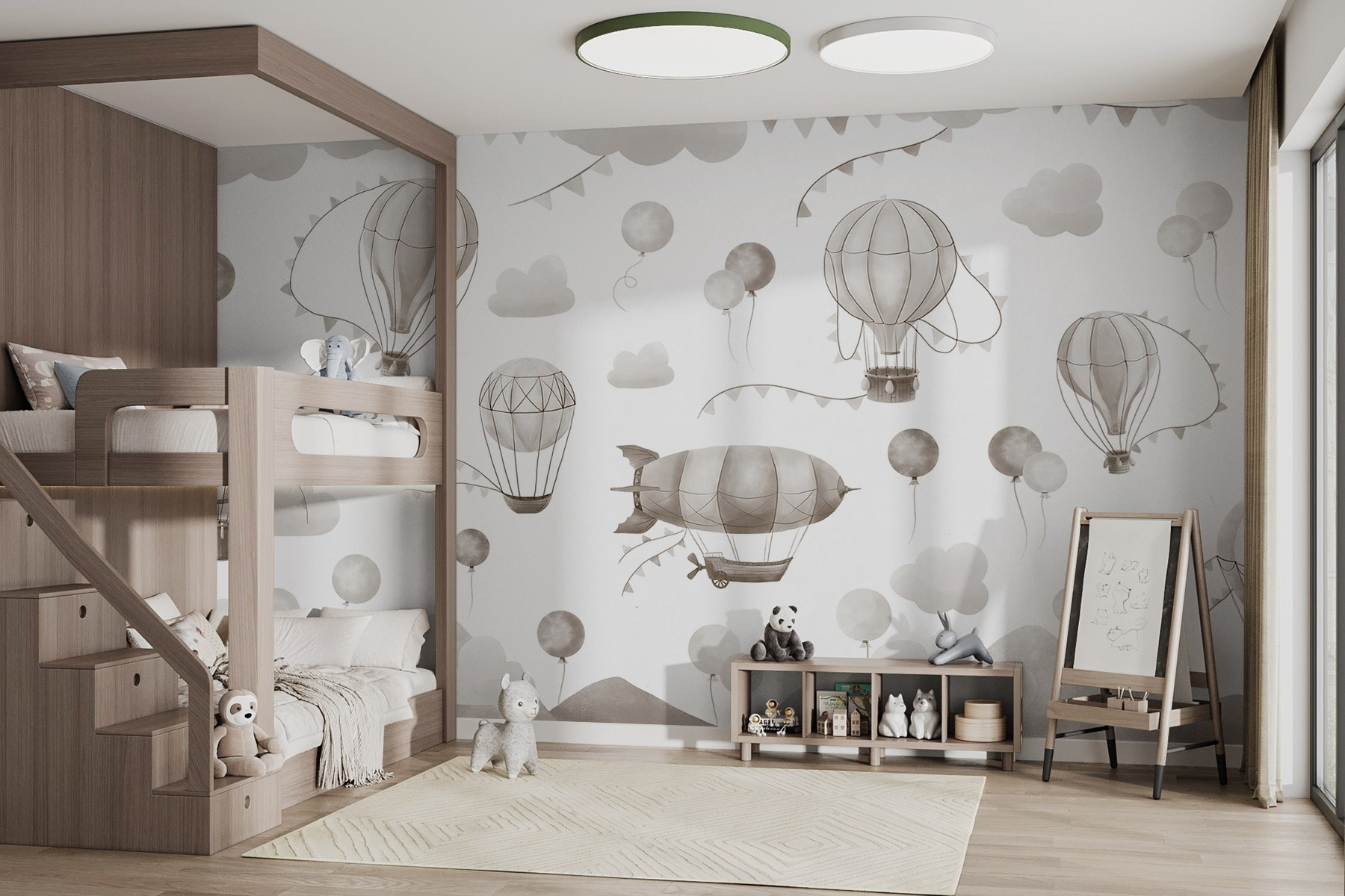 Verwandeln Sie jeden Raum in eine traumhafte Oase mit dieser bezaubernden Wandtapete, die verspielte Heißluftballons und sanfte Berge zeigt. Stellen Sie sich vor, wie schön es wäre, zu dieser fröhlichen Szene aufzuwachen – wer würde sich nicht gerne wie auf Wolke sieben fühlen? Die sanften Farben und zarten Details schaffen eine beruhigende Atmosphäre, perfekt für eine gemütliche Ecke oder ein lebhaftes Spielzimmer. Hier ist eine kleine Tagträumerei: Stellen Sie sich einen faulen Nachmittag vor, lachende Kinder, deren Fantasie Flügel bekommt, während die sanften Bilder Fernweh wecken. Es ist wie eine greifbare Umarmung, die sowohl Abenteuer als auch Ruhe in Ihr Zuhause einlädt. Lassen Sie Ihre Gedanken bei jedem Blick in ferne Himmel schweifen! Perfekt für alle, die ihre Einrichtung mit einem Hauch von unbeschwerter Magie aufwerten möchten.
