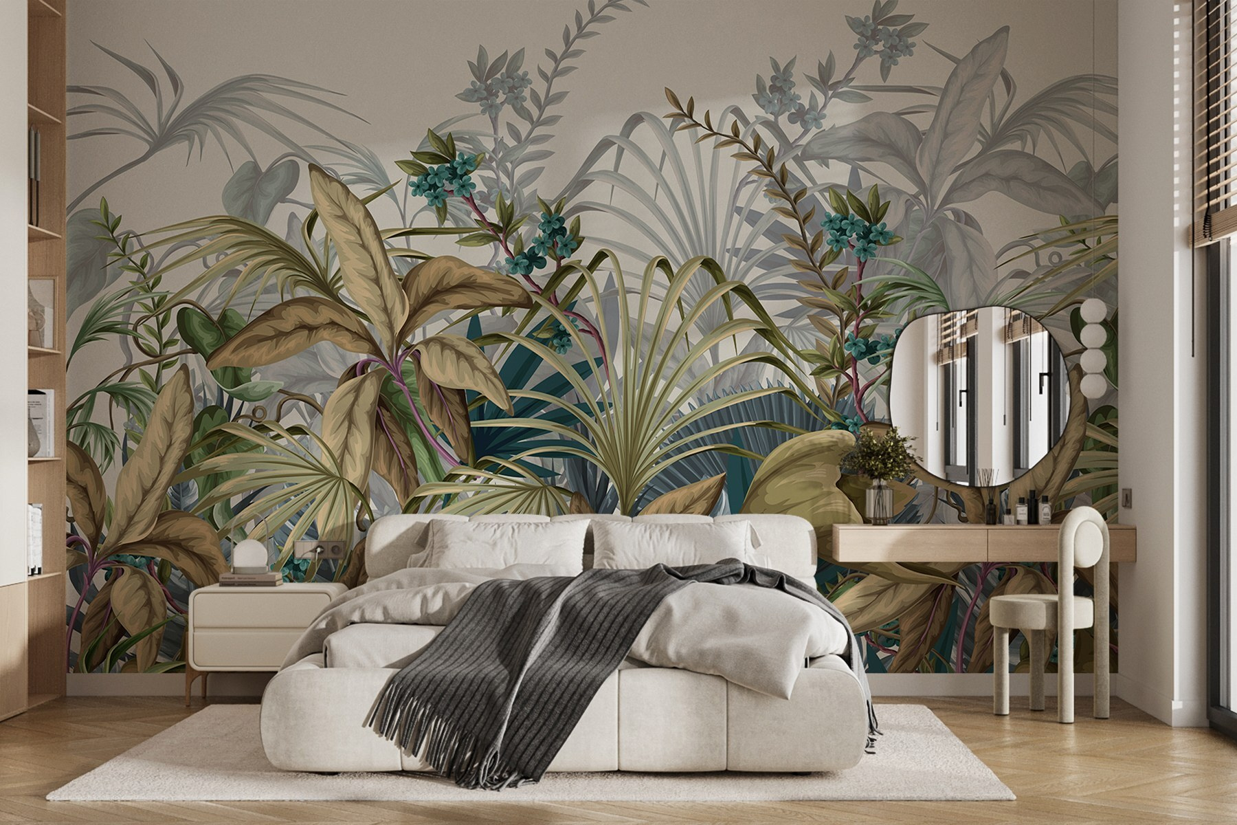Verwandeln Sie Ihren Raum in eine grüne Oase mit den Fototapeten Tropical Leaves in Serene Arrangement. Stellen Sie sich vor: Sie betreten einen Raum, in dem Sie sich jeden Tag wie im Urlaub fühlen. Die sanften Farben und das lebendige Blattwerk verbreiten eine beruhigende Stimmung, die an faule Nachmittage und sanfte Brisen denken lässt. Stellen Sie sich vor, Sie empfangen Freunde, die alle von der üppigen Kulisse angezogen werden, und jedes Blatt regt zu einem Gespräch an. Ob in einer gemütlichen Sitzecke oder einem schicken Wohnzimmer, diese Fototapete verleiht Charakter und Wärme. Es ist, als ob man sich die Natur ins Haus holt – ohne das Ungeziefer! Lassen Sie die tropische Stimmung auf sich wirken und beobachten Sie, wie die Magie entsteht.