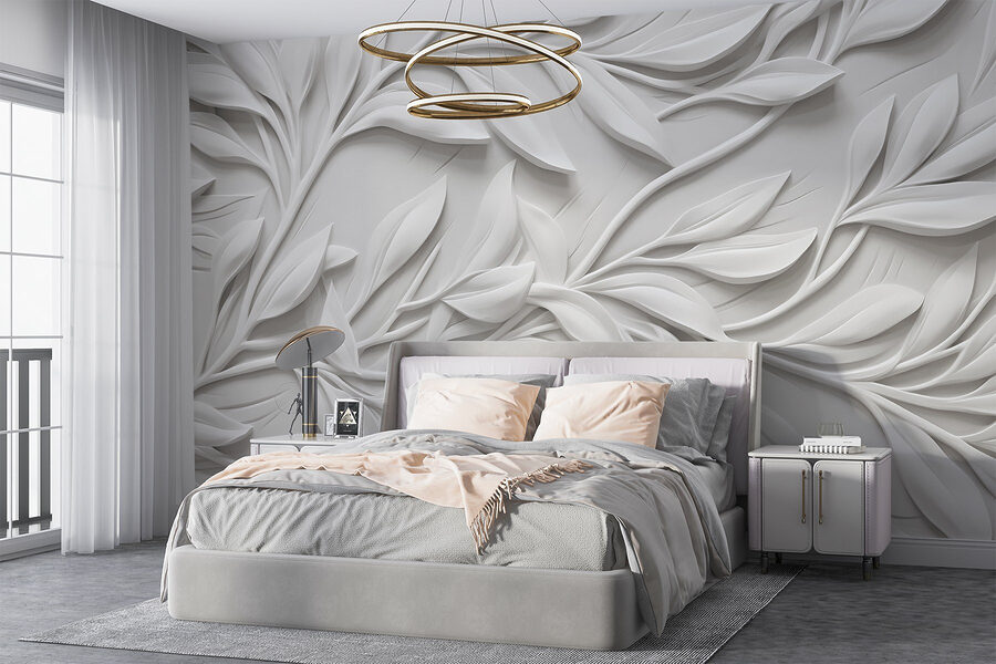 Verwandeln Sie Ihren Raum mit dieser atemberaubenden „Wandtapete Weiße Wand mit Blättern”. Stellen Sie sich vor, Sie betreten einen Raum, in dem weiche, skulpturale Blätter über die Wand zu tanzen scheinen. Es ist, als hätte die Natur einen kleinen Urlaub im Haus gemacht! Der strahlend weiße Hintergrund lässt die filigranen Blattmuster besonders gut zur Geltung kommen und verbreitet eine frische Atmosphäre, die beruhigend und doch schick ist. Ihre Freunde werden vielleicht denken, Sie hätten ein Stück eines wunderschönen Gartens ins Haus geholt. Diese Wandtapete eignet sich perfekt für eine gemütliche Leseecke oder einen eleganten Essbereich und verleiht jedem Raum einen Hauch von Eleganz, der ihn etwas schicker wirken lässt. Können Sie sich vorstellen, wie Sie Tee trinken und dabei die ruhige Schönheit genießen?