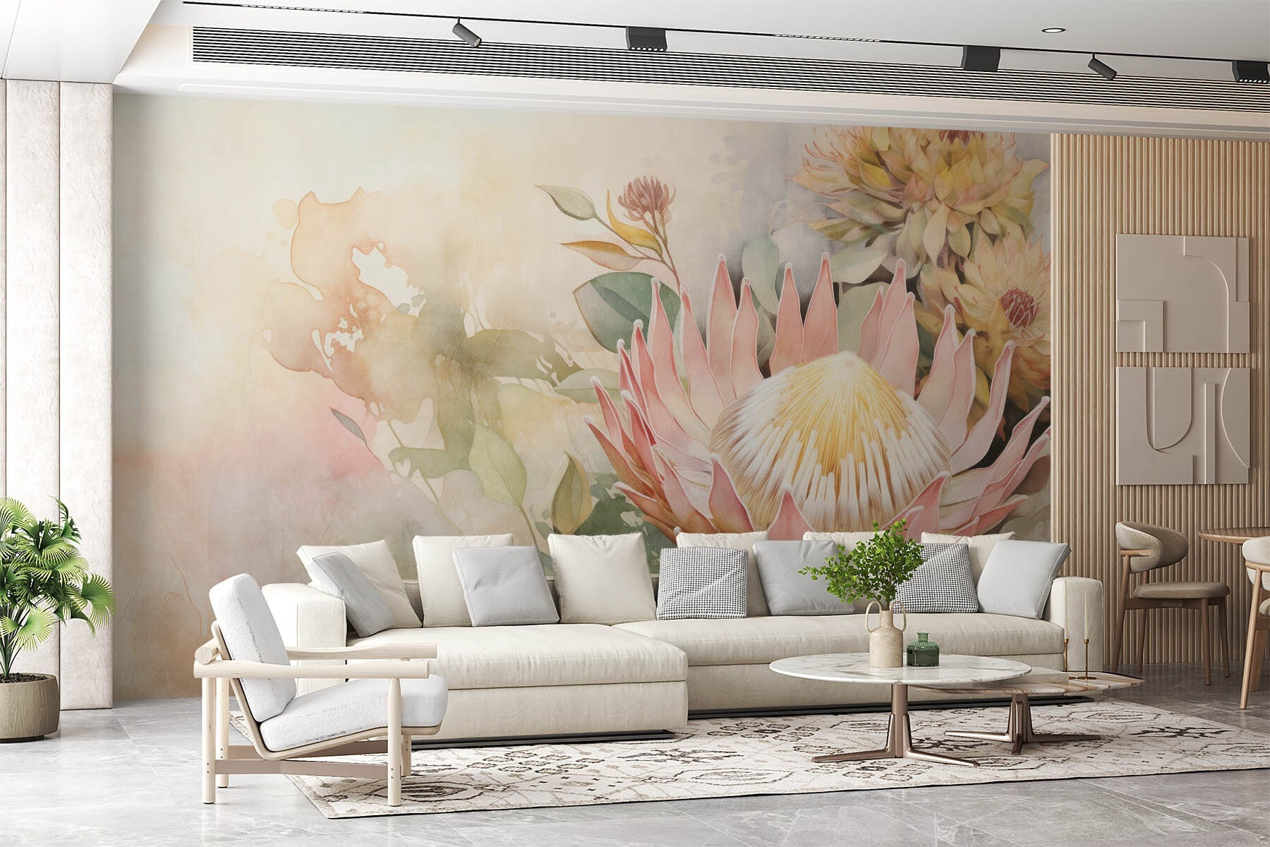 Verwandeln Sie Ihren Raum mit dieser atemberaubenden Wandtapete in Aquarelloptik, die eine wunderschöne Blume zeigt. Stellen Sie sich vor, Sie betreten jeden Tag einen ruhigen Garten, direkt von Ihrem Wohnzimmer aus. Die sanften Farbtöne und zarten Pinselstriche schaffen eine einladende Atmosphäre, die jede Wand sofort aufhellt. Es ist, als würde ein Stück Natur bei Ihnen wohnen!