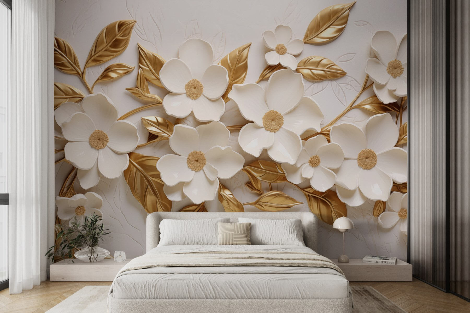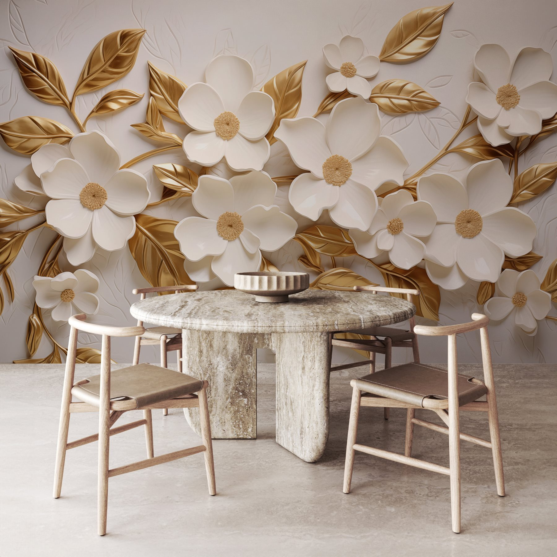 Verwandeln Sie jeden Raum mit dieser atemberaubenden Blumenwand, die wie ein geheimer Garten wirkt, der zum Leben erwacht. Stellen Sie sich vor, Sie betreten Ihren Raum und werden von zarten Blüten begrüßt, von denen jedes einzelne Blütenblatt Geschichten aus der Natur erzählt. Die sanfte Farbgebung sorgt für Ruhe, während die reichhaltigen, blattartigen Details einen Hauch von Eleganz vermitteln, ohne dabei zu pompös zu sein. Es eignet sich perfekt für Wohnbereiche, gemütliche Ecken oder die besondere Wand, die Sie schon lange ins Auge gefasst haben. Stellen Sie sich vor, Sie machen es sich mit einem Buch in der Nähe gemütlich – dieses Wandbild könnte Sie zum Träumen anregen. Ihre Wände werden es Ihnen danken, glauben Sie uns!