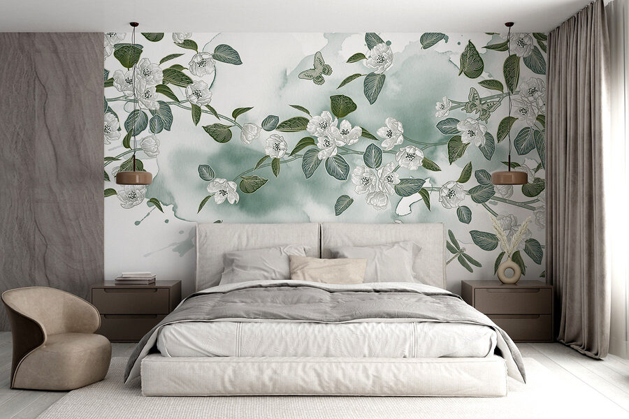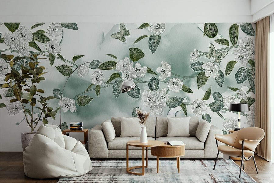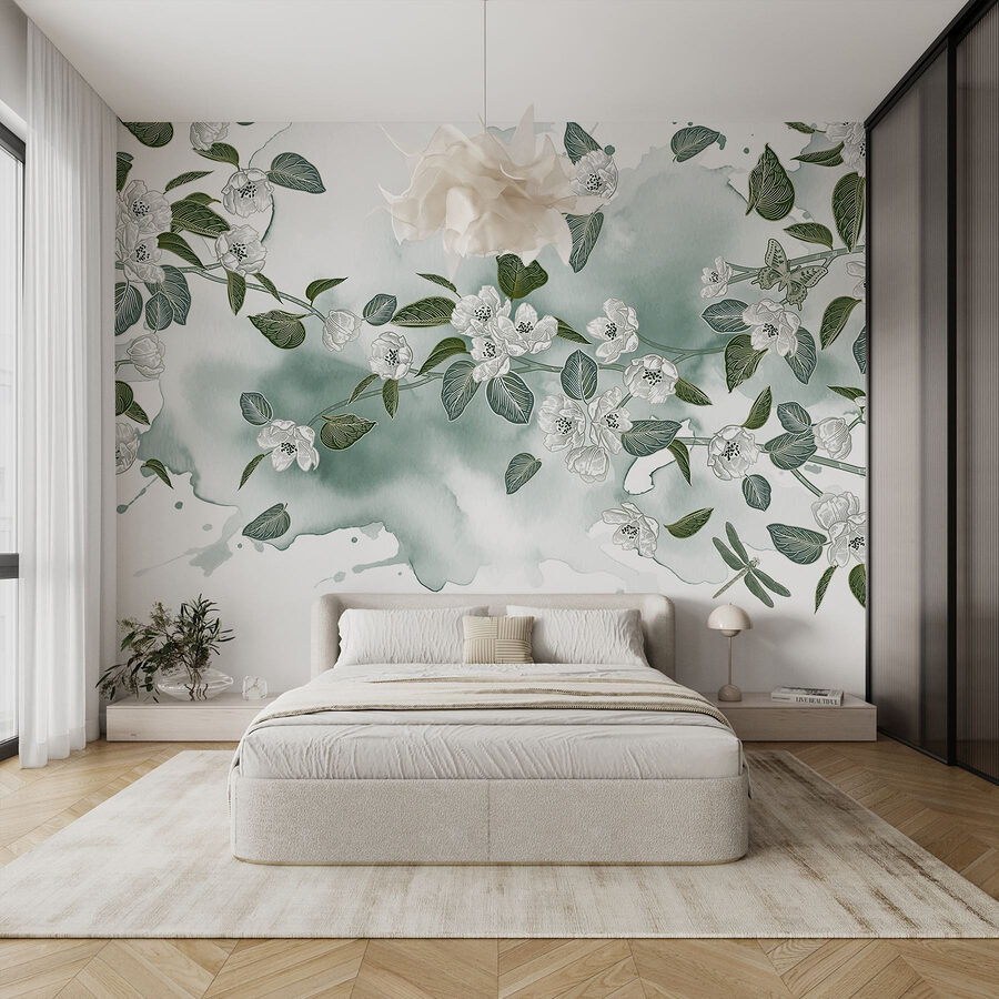 Verwandeln Sie Ihren Raum mit diesem bezaubernden Wandbild aus weißen Blumen und üppigen grünen Blättern, die sich vor einem sanften weißen Hintergrund abheben. Es ist, als hätten Ihre Wände beschlossen, eine Gartenparty zu veranstalten und die Natur direkt in Ihr Zuhause einzuladen. Stellen Sie sich vor, Sie trinken Kaffee, während Schmetterlinge um Sie herumflattern (okay, vielleicht nicht wörtlich, aber es fühlt sich so an). Dieses Aquarelldesign sorgt für eine beruhigende Atmosphäre und eignet sich perfekt für gemütliche Wohnzimmer oder ruhige Schlafzimmer. Es ist erfrischend, elegant und ein wenig skurril – ein garantierter Gesprächsaufhänger! Und wer möchte nicht jeden Tag mit einem Blumenstrauß voller Freude aufwachen?