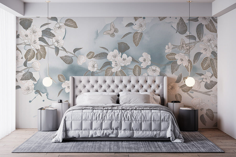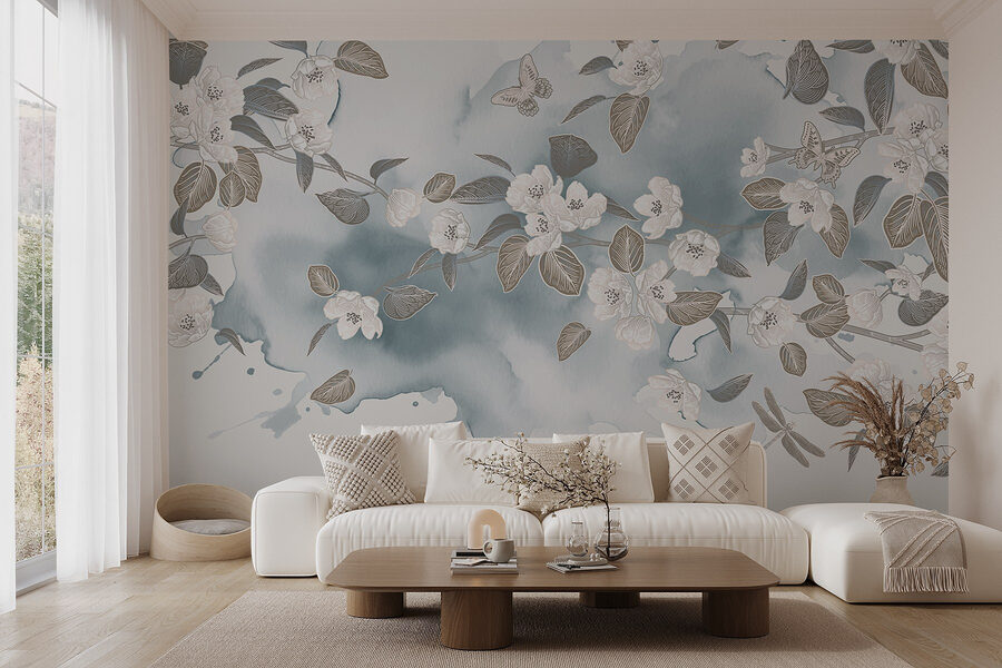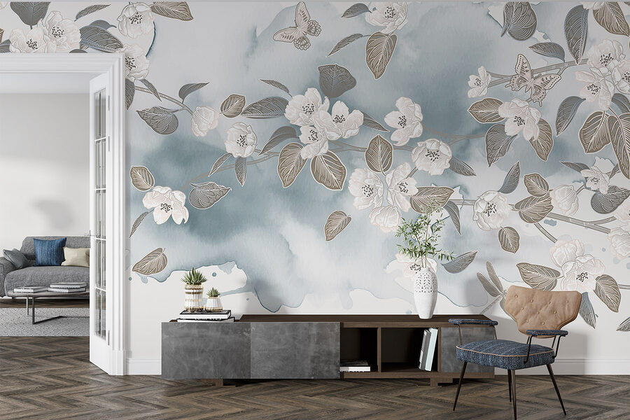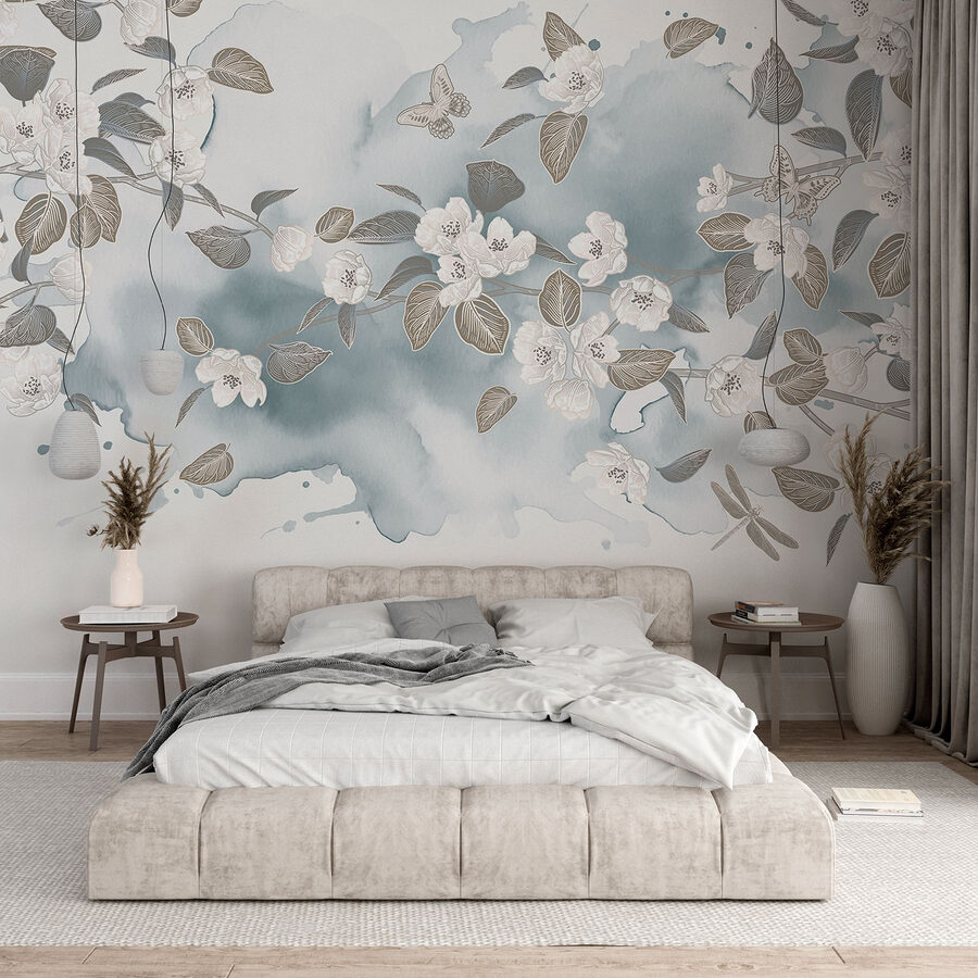 Verändern Sie jeden Raum mit dieser atemberaubenden Fototapete, auf der weiße Blumen und Blätter auf einem ruhigen blauen Hintergrund tanzen. Stellen Sie sich vor, Sie wachen mit dieser sanften Schönheit auf – es ist, als ob der Frühling direkt an Ihren Wänden Einzug gehalten hätte. Der Aquarell-Effekt sorgt für eine sanfte, verträumte Stimmung, die selbst die trübsten Tage aufhellen kann. Ob in einem gemütlichen Wohnzimmer oder einem ruhigen Schlafzimmer, dieses Wandbild lädt zu Frieden und Ruhe ein. Perfekt für alle, die die Natur lieben, aber vielleicht vergessen, ihre Pflanzen zu gießen. Es ist ein schöner kleiner Rückzugsort in den eigenen vier Wänden, der jeden Moment zu etwas Besonderem macht. Perfektes Detail, oder?