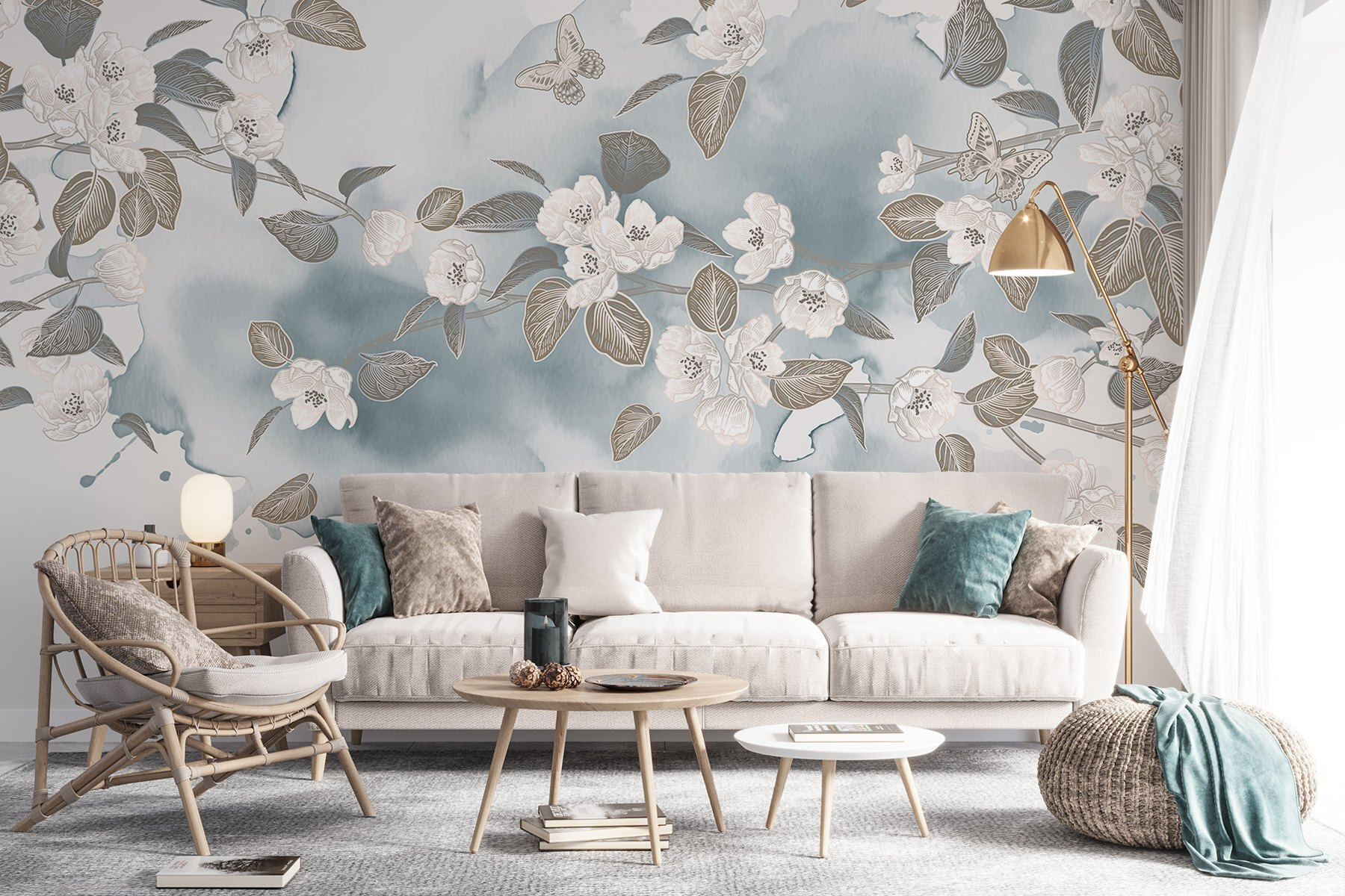 Verändern Sie jeden Raum mit dieser atemberaubenden Fototapete, auf der weiße Blumen und Blätter auf einem ruhigen blauen Hintergrund tanzen. Stellen Sie sich vor, Sie wachen mit dieser sanften Schönheit auf – es ist, als ob der Frühling direkt an Ihren Wänden Einzug gehalten hätte. Der Aquarell-Effekt sorgt für eine sanfte, verträumte Stimmung, die selbst die trübsten Tage aufhellen kann. Ob in einem gemütlichen Wohnzimmer oder einem ruhigen Schlafzimmer, dieses Wandbild lädt zu Frieden und Ruhe ein. Perfekt für alle, die die Natur lieben, aber vielleicht vergessen, ihre Pflanzen zu gießen. Es ist ein schöner kleiner Rückzugsort in den eigenen vier Wänden, der jeden Moment zu etwas Besonderem macht. Perfektes Detail, oder?