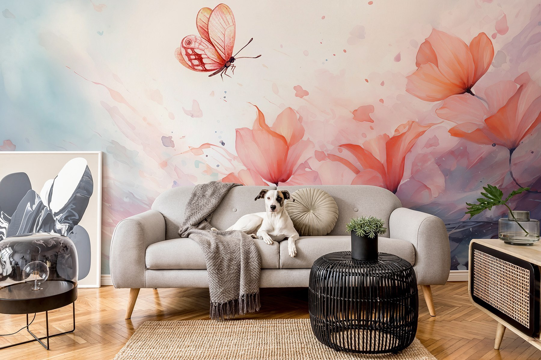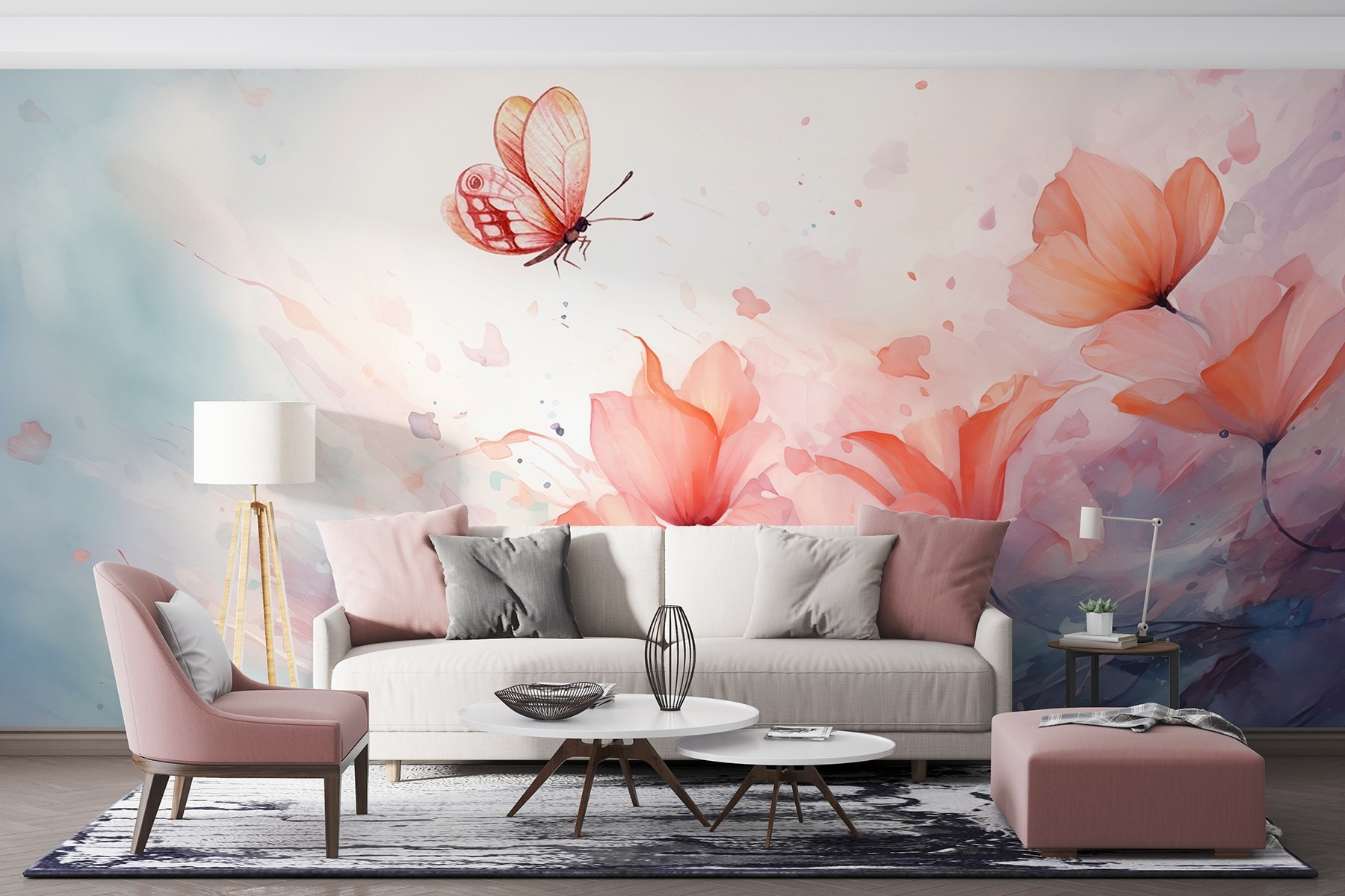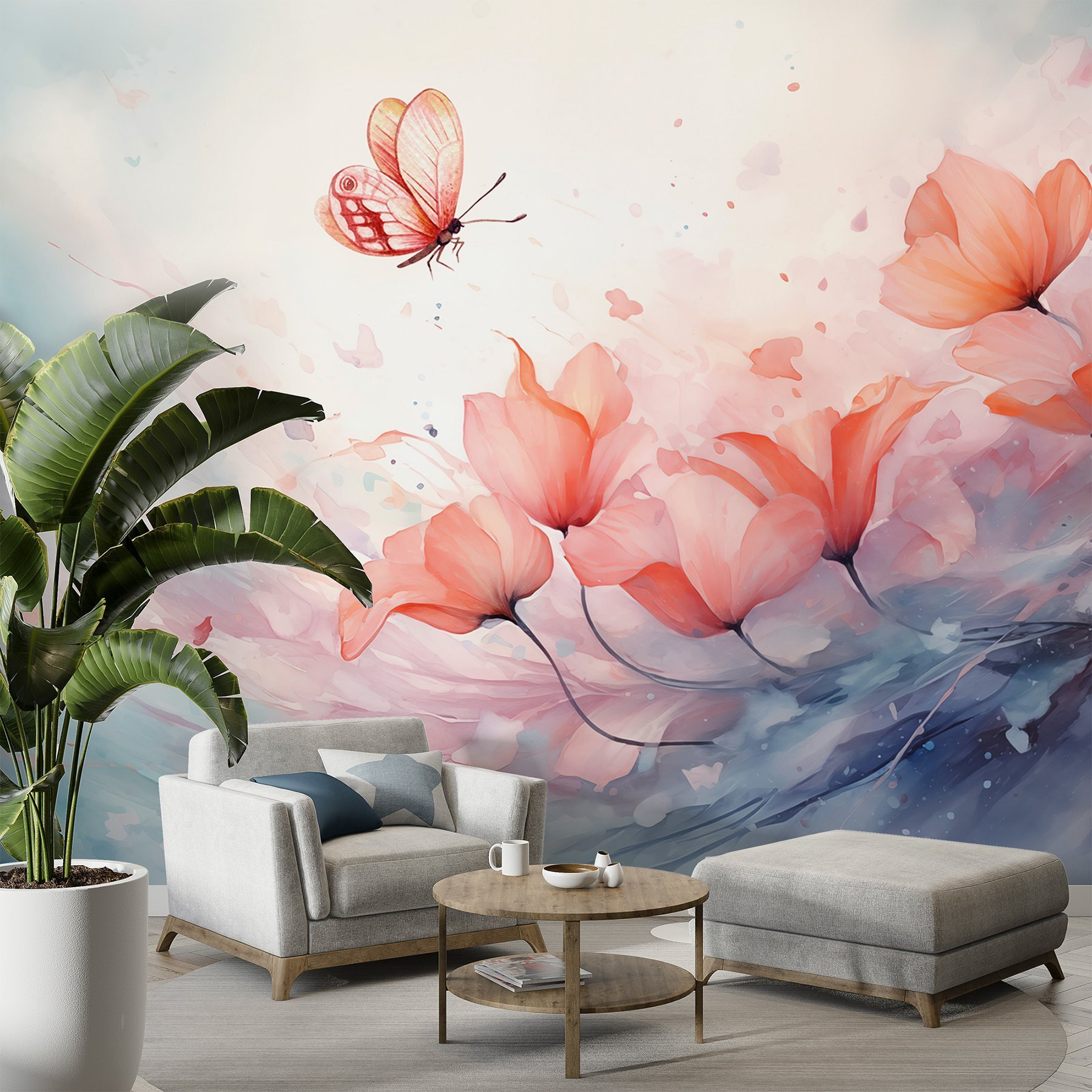 Verwandeln Sie Ihren Raum mit dieser bezaubernden Fototapete, auf der ein zarter Schmetterling über einem heiteren Blumenmeer schwebt. Es ist wie ein kleines Stück Magie der Natur direkt in Ihrem Zuhause! Stellen Sie sich vor, Sie wachen jeden Tag mit diesem sanften Aquarelltraum auf. Die sanften Farbtöne verbreiten eine friedliche Stimmung, die jeden Raum einladend wirken lässt. Es eignet sich perfekt für eine sonnenbeschienene Ecke oder eine gemütliche Leseecke und lädt zu Tagträumen und einem Lächeln ein. Vielleicht weckt es die Erinnerung an einen wunderlichen Gartenspaziergang oder inspiriert zu einem freundlichen Gespräch beim Kaffee über die Schönheit der einfachen Dinge. Es ist ein Dekor, das eine schöne Geschichte erzählt.