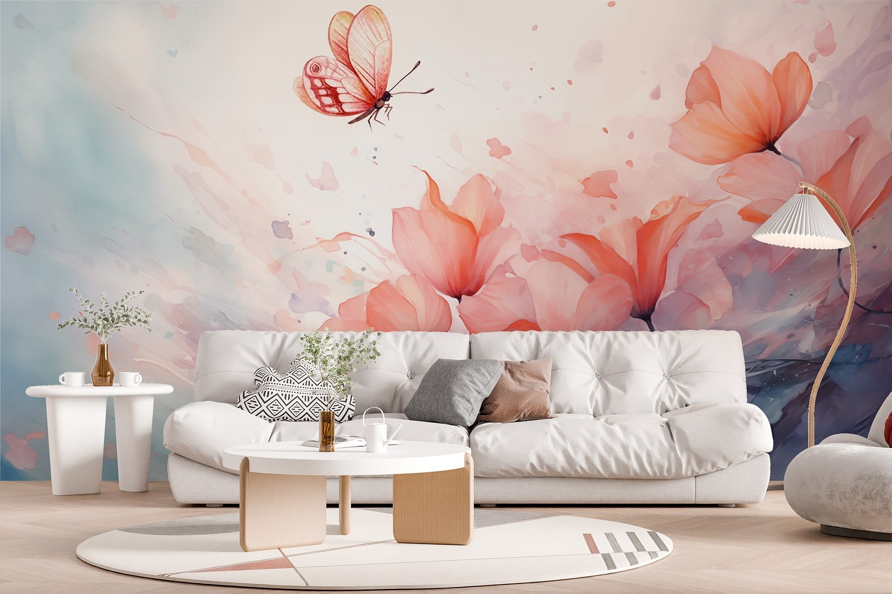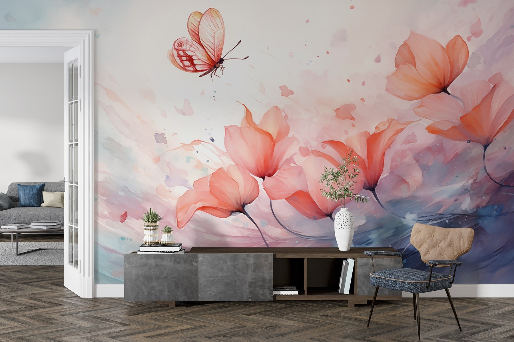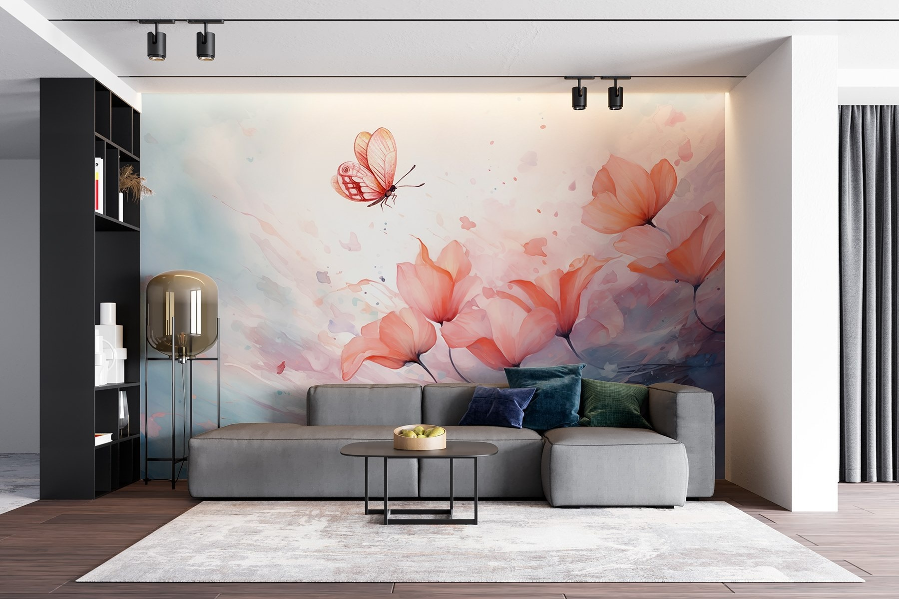 Verwandeln Sie Ihren Raum mit dieser bezaubernden Fototapete, auf der ein zarter Schmetterling über einem heiteren Blumenmeer schwebt. Es ist wie ein kleines Stück Magie der Natur direkt in Ihrem Zuhause! Stellen Sie sich vor, Sie wachen jeden Tag mit diesem sanften Aquarelltraum auf. Die sanften Farbtöne verbreiten eine friedliche Stimmung, die jeden Raum einladend wirken lässt. Es eignet sich perfekt für eine sonnenbeschienene Ecke oder eine gemütliche Leseecke und lädt zu Tagträumen und einem Lächeln ein. Vielleicht weckt es die Erinnerung an einen wunderlichen Gartenspaziergang oder inspiriert zu einem freundlichen Gespräch beim Kaffee über die Schönheit der einfachen Dinge. Es ist ein Dekor, das eine schöne Geschichte erzählt.