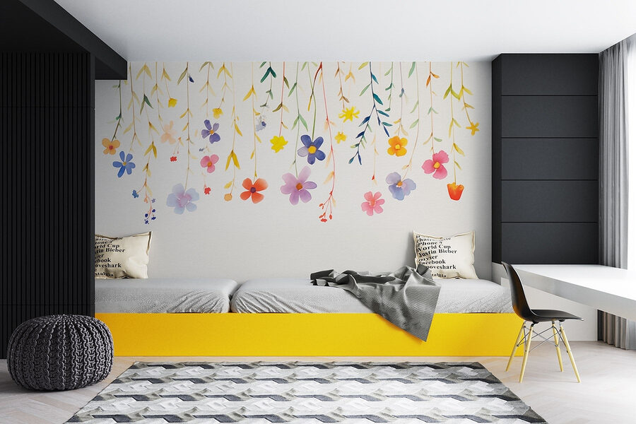 Verwandeln Sie jeden Raum in ein kleines Stück Natur mit dieser entzückenden Fototapete! Stellen Sie sich einen heiteren Garten mit Blumen und Blättern in Aquarellfarben vor, der mühelos Fröhlichkeit und Wärme verbreitet. Stellen Sie sich vor, Sie wachen mit dieser lebendigen Vision auf, mit diesen sanften Farben, die an einen Frühlingsmorgen erinnern. Es ist, als hätte man einen blühenden Blumenstrauß an der Wand, der nicht gegossen werden muss. Ihre Freunde werden staunen, wie es Ihren Raum erhellt, Gespräche anregt und vielleicht sogar einen winzigen Hauch von Eifersucht hervorruft – perfekt für Ihr Wohnzimmer oder die gemütliche Leseecke! Es ist wie eine sanfte Umarmung von der Natur, drinnen.