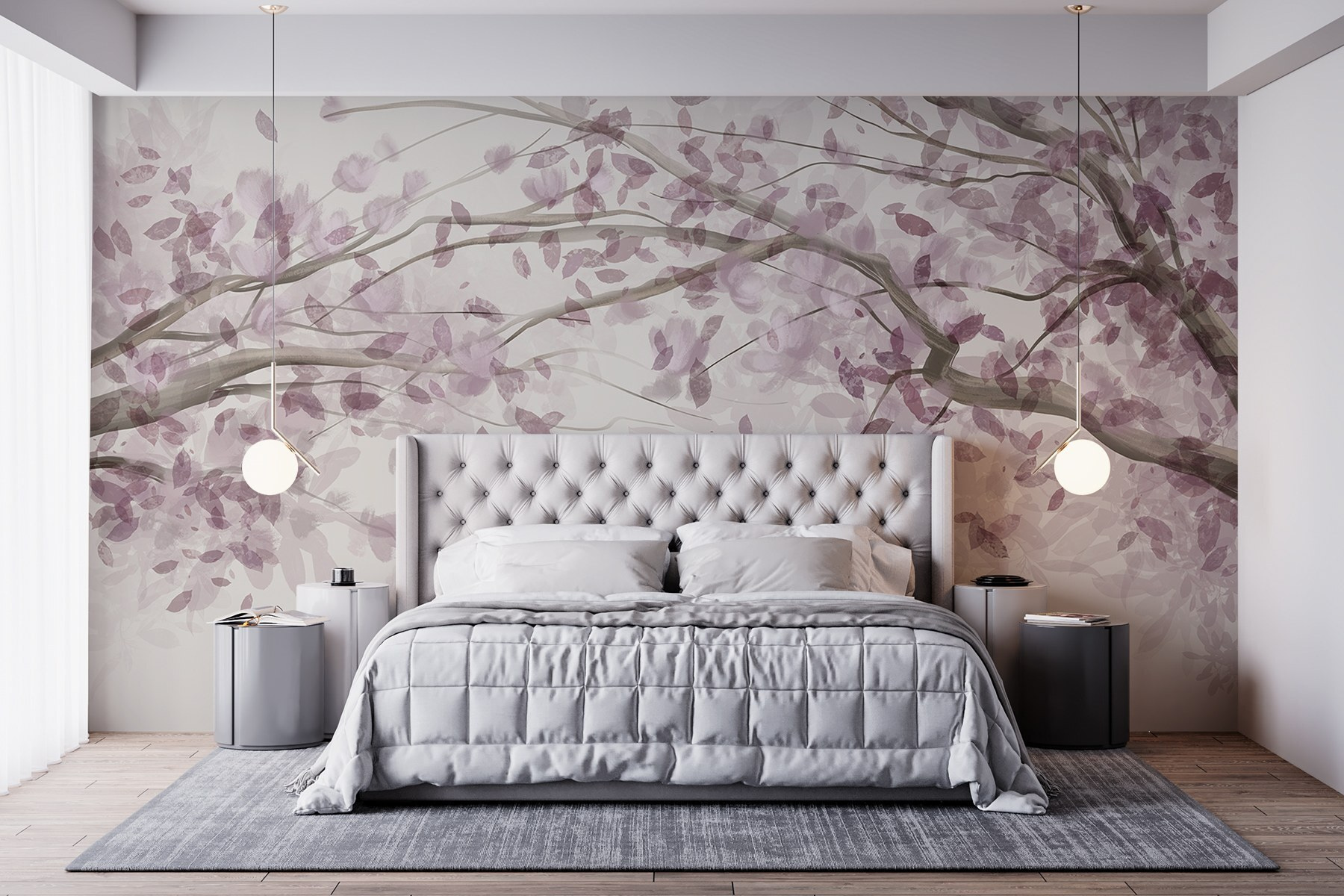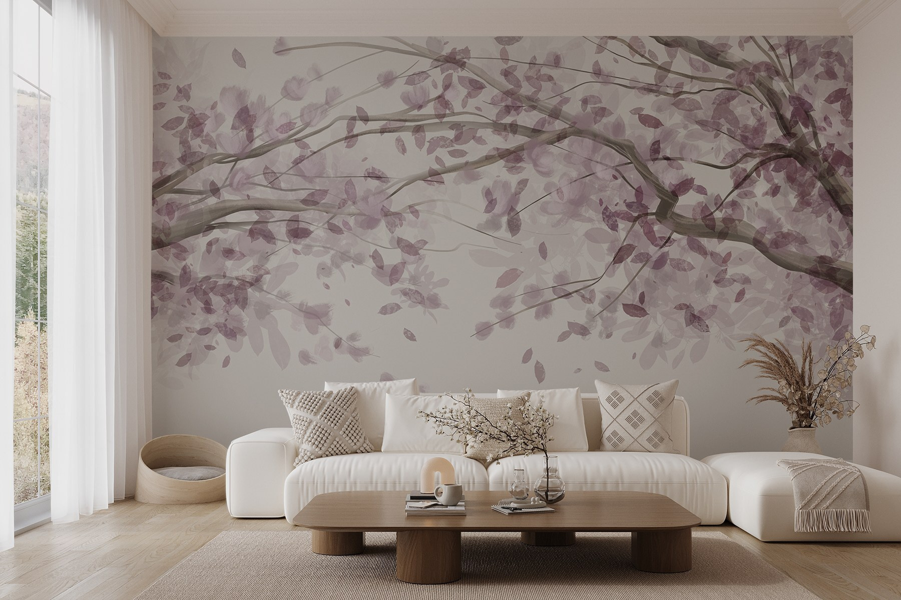 Dieses bezaubernde Wandbild mit einem Baum, der mit eleganten lila Blättern geschmückt ist, verwandelt jeden Raum in einen ruhigen Zufluchtsort. Es ist, als würde man sich ein Stück eines beruhigenden japanischen Gartens ins Haus holen. Stellen Sie sich vor, Sie schlürfen einen Tee, während Sie die zarten Aquarellzweige betrachten – ein wahrer Stimmungsaufheller! Dieses Wandbild strahlt Ruhe aus und eignet sich daher perfekt für eine gemütliche Leseecke oder ein verspieltes Kinderzimmer. Und diese lila Farbtöne? Sie verleihen einen Hauch von Charme, ohne die Sinne zu überwältigen. Wer würde nicht jedes Mal, wenn er daran vorbeigeht, ein bisschen Freude empfinden? Perfekt für alle, die sich die Anmut der Natur nach Hause holen wollen. Lassen Sie sich von der Schönheit verzaubern!