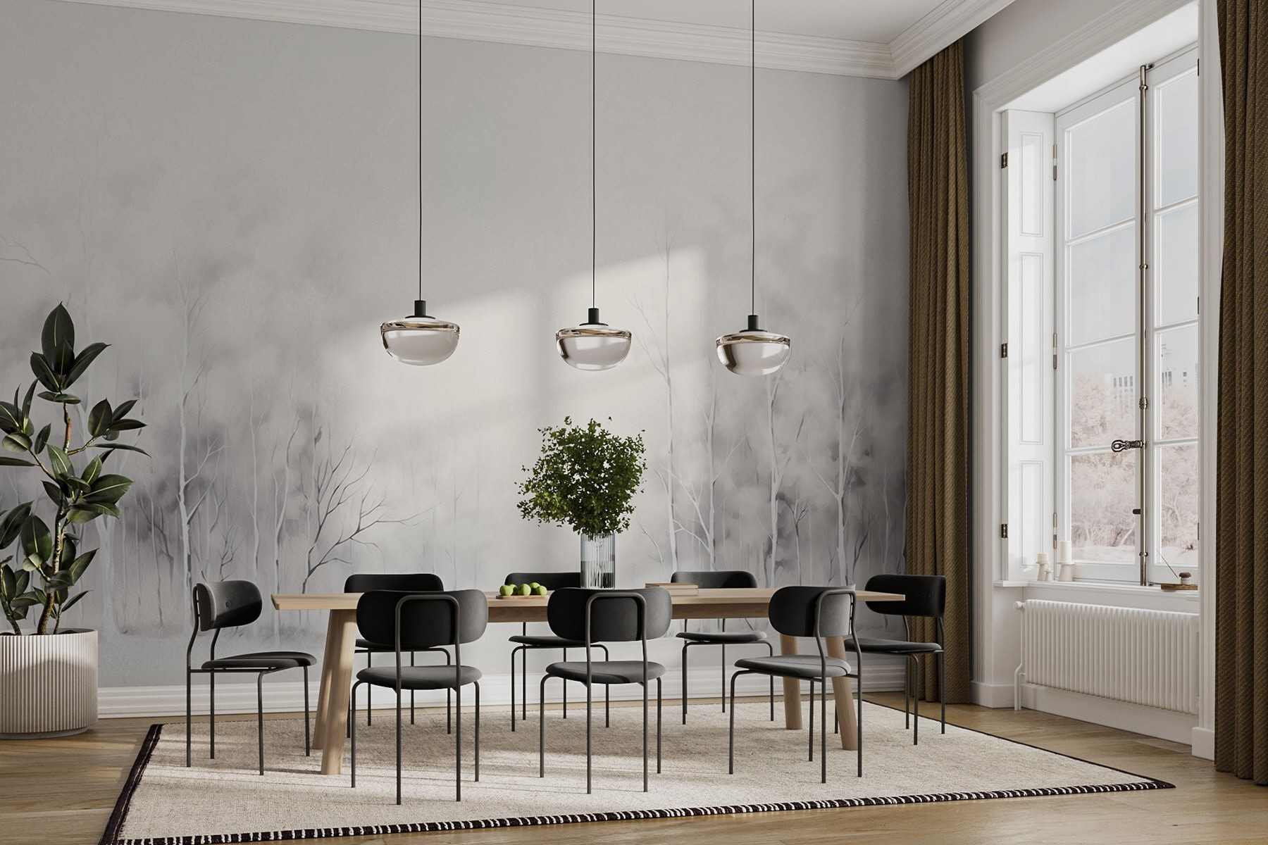 Holen Sie sich die ruhige Schönheit eines verschneiten Waldes direkt an Ihre Wände mit dieser charmanten Fototapete mit einer Gruppe von Bäumen. Stellen Sie sich vor, dass Sie jedes Mal, wenn Sie den Raum betreten, in ein Winterwunderland eintauchen. Die sanften, gedämpften Töne schaffen eine friedliche Atmosphäre, in der Sie sich nach einem langen Tag perfekt entspannen können. Es ist, als hätte man die Ruhe der Natur direkt zu Hause. Egal, ob Sie auf der Couch einen Kakao trinken oder an einem gemütlichen Projekt arbeiten, dieses Wandbild lädt zu Wärme und Ruhe ein. Außerdem werden Freunde und Familie mit Sicherheit danach fragen – wer will schon Gesprächsstoff? Warum lassen Sie also nicht Ihre Wände für Sie Geschichten erzählen?