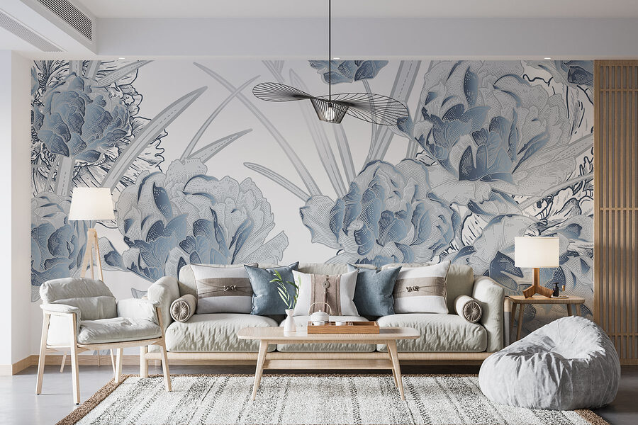 Verwandeln Sie jeden Raum mit den bezaubernden “Delicate Blooms in Soft Hues”. Es ist, als hätte man seinen eigenen kleinen Garten im Haus, ohne dass man einen grünen Daumen braucht. Stellen Sie sich vor: Sie wachen mit einer Wand auf, die mit zarten Blüten in Blautönen belebt ist, die einladend und gelassen wirken und jeden Moment ein bisschen besonderer machen. Ob in Ihrer gemütlichen Leseecke oder in einer belebten Küche, diese Fototapete verleiht Ihnen einen Hauch von Schönheit, der mühelos schick wirkt. Ihre Freunde werden Sie vielleicht sogar fragen, ob Sie einen Dekorateur engagiert haben, und wer muss schon zugeben, dass es einfach eine fabelhafte Wand ist? Die feinen Linien und sanften Töne schaffen ein verträumtes Ambiente, das Sie wie eine warme Umarmung an einem kühlen Tag umgibt.