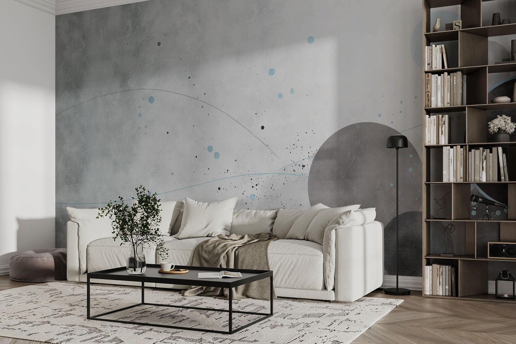 Treten Sie ein in eine Welt der beruhigenden Schwingungen mit dieser Fototapete mit grauen und blauen Kreisen, begleitet von sanften Linien, die über die Oberfläche zu tanzen scheinen. Es ist wie eine Konversation zwischen den Farben, die Geheimnisse der Gelassenheit und Kreativität flüstert. Stellen Sie sich vor, Sie schlürfen Ihren Morgenkaffee in einer gemütlichen Ecke und die sanften Farbtöne umhüllen Sie wie eine warme Umarmung. Diese Fototapete passt perfekt zu einer modernen Ästhetik und lädt zu Tagträumen und tiefen Gedanken ein. Ob im Wohnzimmer oder in einem kreativen Raum, es setzt genau den richtigen Ton – einladend und doch erfrischend lebendig. Verabschieden Sie sich von langweiligen Wänden und begrüßen Sie einen Hauch von Inspiration!