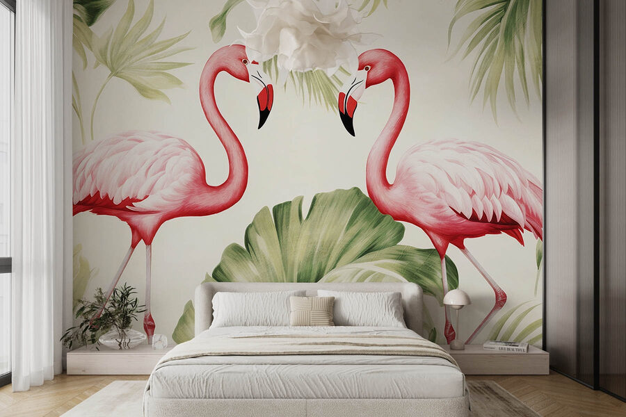 Verwandeln Sie Ihren Raum in ein tropisches Paradies mit dieser lebendigen Fototapete, die ein Paar lebhafte rosa Flamingos inmitten üppiger grüner Blätter zeigt. Das ist wie ein Mini-Urlaub direkt in Ihrem Zuhause! Stellen Sie sich vor, Sie wachen jeden Tag mit diesen schrulligen Vögeln auf, die spielerisch vor einem sanften Hintergrund posieren. Die frischen Farben bringen Leben in jeden Raum und machen ihn einladend und fröhlich. Ob es sich um ein gemütliches Wohnzimmer oder einen inspirierenden Arbeitsplatz handelt, diese Fototapete verleiht jedem Raum einen Hauch von Persönlichkeit. Freunde und Familie werden mit Sicherheit darüber sprechen. Vielleicht sehen Sie in Ihrer Zukunft sogar einen Flamingo-Cocktail!