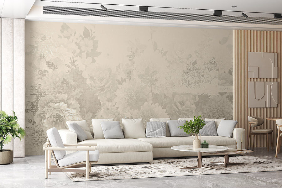 Fototapeten Zartes florales Muster in sanften Tönen Fototapeten Zartes florales Muster in sanften Tönen