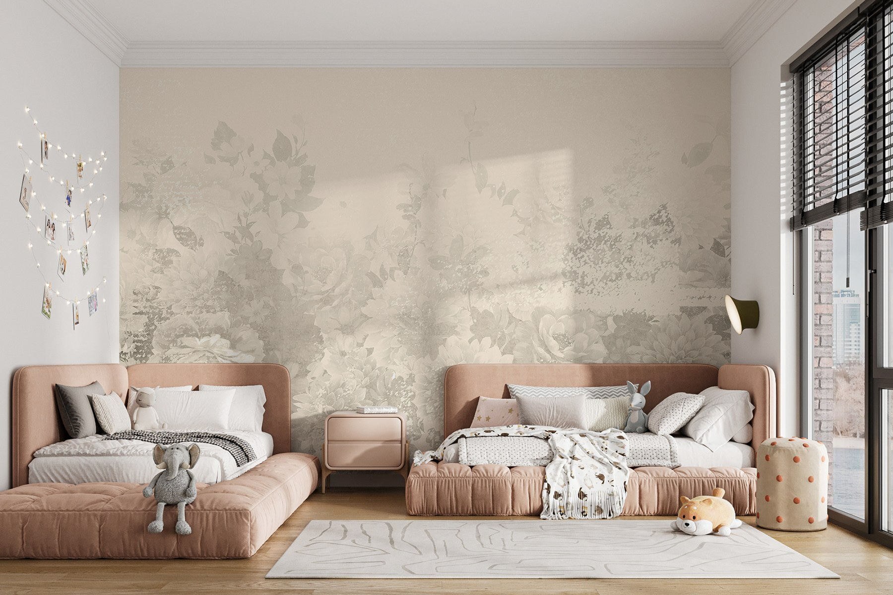 Verwandeln Sie jeden Raum mit dieser atemberaubenden, zarten Blumenwand, in der sanfte Töne wie eine leichte Frühlingsbrise zusammenkommen. Stellen Sie sich vor, Sie betreten Ihren Raum und haben das Gefühl, gerade einen ruhigen Garten betreten zu haben. Die zarten Farbtöne schaffen eine beruhigende Kulisse, in der man sich nach einem langen Tag entspannen kann. Es ist, als hätten Sie eine sanfte Unterhaltung mit der Natur direkt an Ihren Wänden!