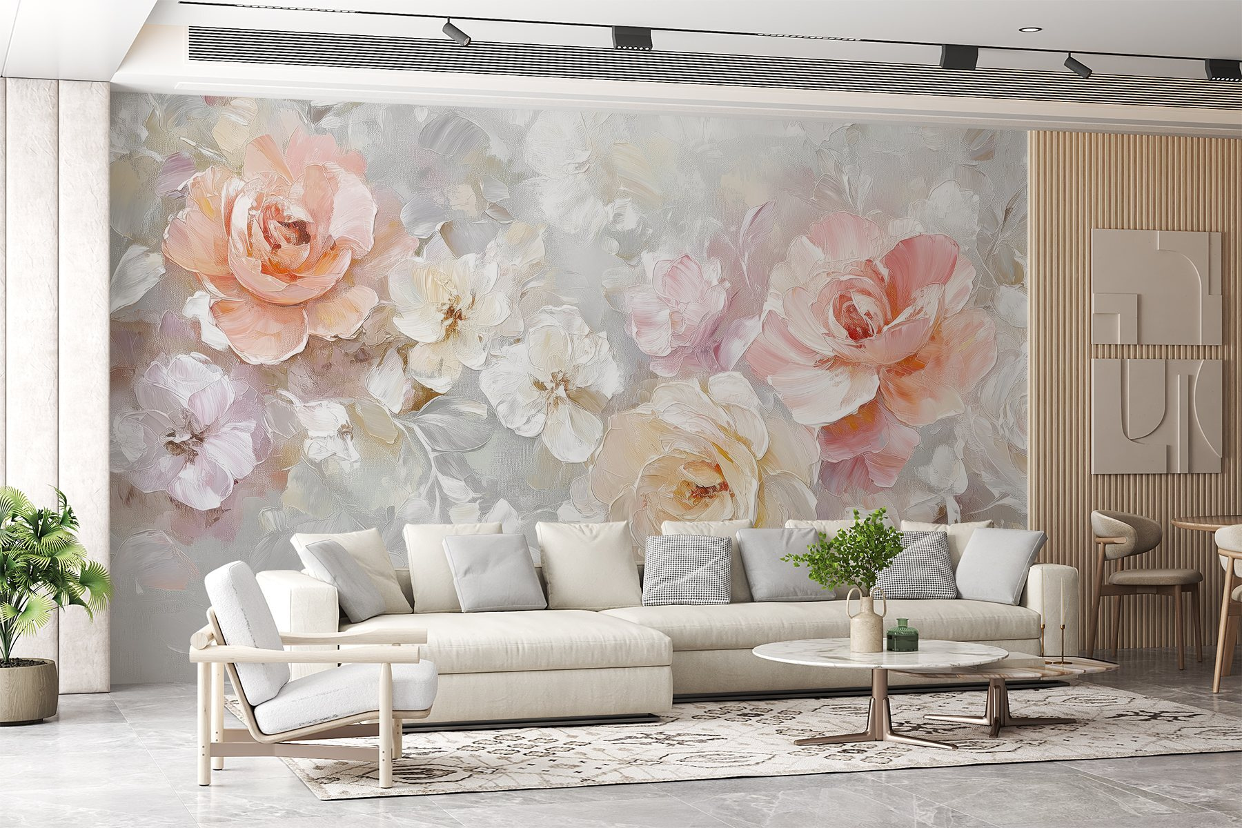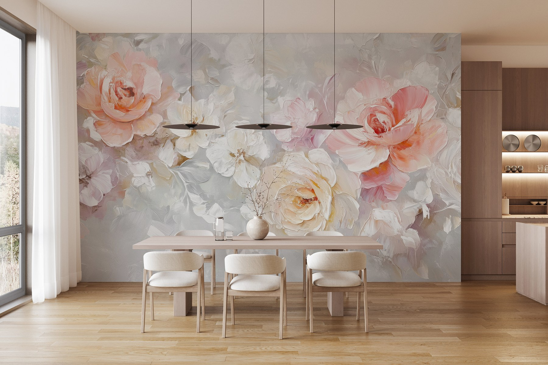 Verwandeln Sie Ihren Raum mit dieser wunderschönen Fototapete mit Blumen vor einem sanften weißen Hintergrund. Stellen Sie sich vor, jeden Tag in einen Garten zu treten, in dem zarte Blütenblätter nur für Sie blühen. Die sanften Farben schaffen eine ruhige Atmosphäre, perfekt für eine gemütliche Leseecke oder eine fröhliche Küche. Stellen Sie sich vor, Sie versammeln sich mit Freunden, und wenn sie das Kunstwerk bewundern, fühlen sie sich gleich ein bisschen glücklicher. Es ist, als ob man sich ein Stück Natur ins Haus holt, ohne dass man gießen muss oder lästige Pollen fliegen. Reine visuelle Freude – wer hätte gedacht, dass ein Wandbild die Stimmung so sehr heben kann?