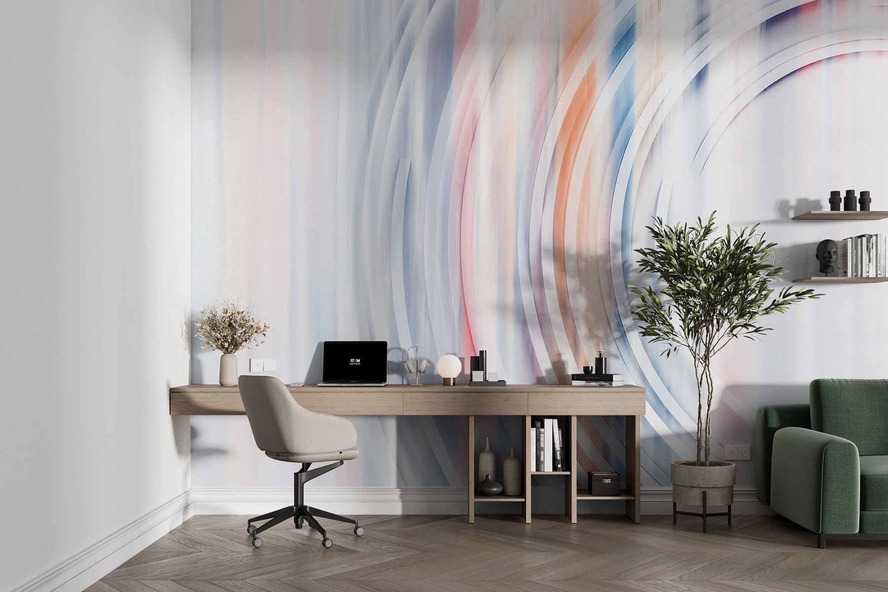Die Verwandlung eines Raums in etwas wirklich Besonderes beginnt mit dem richtigen Hintergrund, und mit dieser Fototapete ist das ein Kinderspiel. Die weichen Farbverläufe schaffen eine verträumte Atmosphäre, die sich wie eine sanfte Umarmung anfühlt. Stellen Sie sich vor, Sie lassen sich mit einer Tasse Tee in Ihrem Lieblingssessel nieder, blicken auf diesen kunstvollen Kreis und spüren, wie Ihre Sorgen verschwinden. Es ist wie ein Stück moderner Kunst, das genau das richtige Maß an Flair mitbringt, ohne zu auffällig zu sein. Perfekt für ein gemütliches Arbeitszimmer oder ein lebendiges Wohnzimmer. Es ist nicht einfach nur eine Tapete, es ist eine Atmosphäre, Wärme und ein Hauch von Laune, die jeden, der sie betritt, zum Innehalten und Genießen einlädt. Und wer liebt es nicht, ein Gespräch zu beginnen?