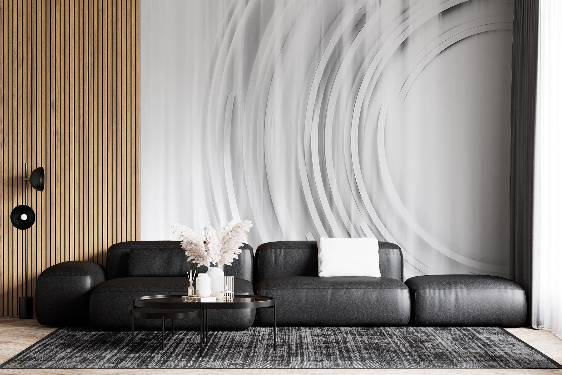 Verwandeln Sie Ihren Raum mit dieser fesselnden Fototapete mit weißem und grauem Hintergrund, der mit fließenden Kreisen verziert ist. Es ist wie ein modernes Kunstwerk, das Ihren Wänden Leben einhaucht. Stellen Sie sich vor, Sie betreten einen Raum, der sowohl luftig als auch raffiniert wirkt – einen Zufluchtsort, an dem die Kreativität im Mittelpunkt steht. Die sanften Kurven laden zur Erkundung ein und wecken ein Gefühl der Gelassenheit. Ob in einem gemütlichen Wohnzimmer oder einem schicken Büro, diese Fototapete fügt sich mühelos in jeden Raum ein. Es ist das stilvolle Flüstern, das sagt: “Du hast Geschmack”. Perfekt für alle, die subtile Eleganz mit Pfiff zu schätzen wissen!