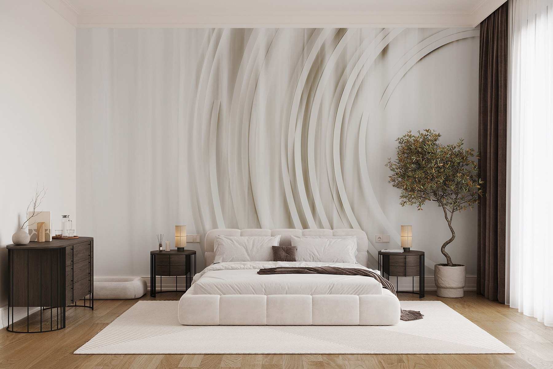 Mit dieser atemberaubenden Fototapete in sanftem Weiß und Grau, auf dem elegante Kreise tanzen, können Sie jeden Raum verwandeln. Es ist das perfekte Stück, um eine ruhige Atmosphäre zu schaffen – stellen Sie sich vor, Sie betreten Ihren Wohnraum und spüren sofort eine Welle der Ruhe über sich hereinbrechen. Die Schlichtheit des Designs macht es vielseitig und lässt sich mühelos mit verschiedenen Stilen kombinieren. Gäste könnten mitten im Gespräch innehalten, fasziniert von den sanften Kurven. Es ist ein subtiles Statement, das Raffinesse und Ruhe ausstrahlt und jeden Blick wie einen Hauch von frischer Luft erscheinen lässt. Egal, ob Sie eine Dinnerparty veranstalten oder einen ruhigen Abend genießen, diese Fototapete unterstreicht die Atmosphäre und verwandelt die Wände in eine Leinwand mit moderner Kunst. Wer hätte gedacht, dass Dekor so einladend sein kann?