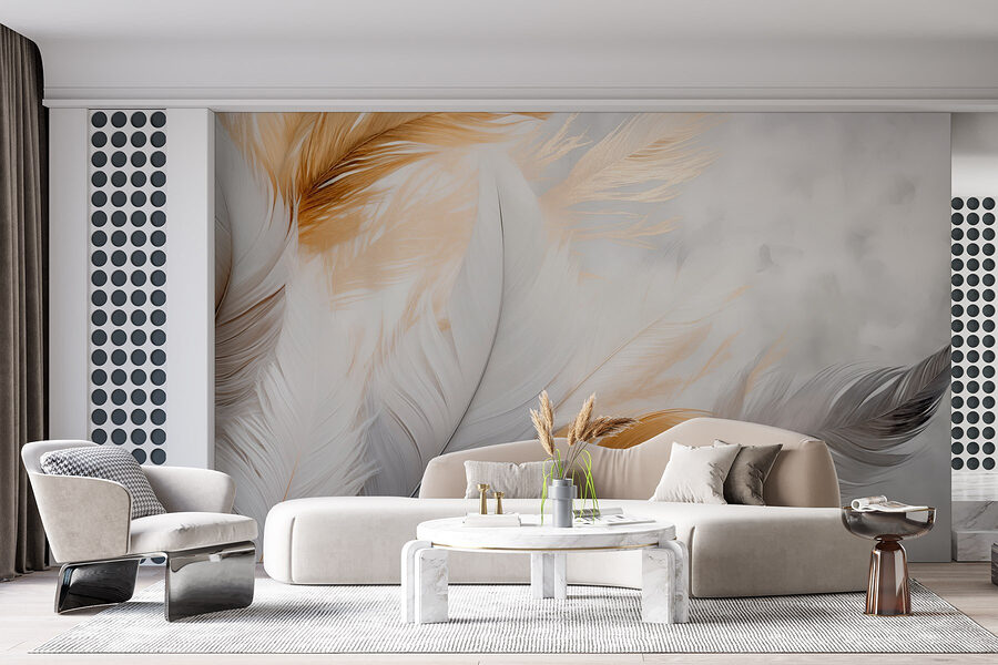Verwandeln Sie Ihren Raum mit den bezaubernden “Fototapeten Soft Feathers in Delicate Arrangement”. Dies ist nicht einfach nur eine weitere Wandverkleidung; es ist, als ob Sie Ihren Raum in eine gemütliche Umarmung aus weichen Farben und verträumten Mustern hüllen würden. Stellen Sie sich vor, Sie betreten einen Raum, der sich fast schwerelos anfühlt – die sanft umherwirbelnden Federn laden dazu ein, an einen ruhigen Mittagsschlaf oder faule Tage in der Natur zu denken. Er eignet sich perfekt für eine gemütliche Ecke, ein friedliches Schlafzimmer oder wo auch immer eine ruhige Atmosphäre benötigt wird. Wer würde nicht über den zarten Tanz der weichen Texturen lächeln? Dieses Wandbild ist nicht nur Dekoration, es ist ein Erlebnis. Also, nur zu – bringen Sie Ihre Wände zum Singen!