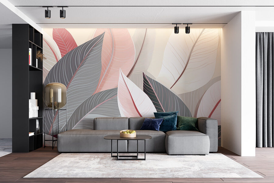 Verwandeln Sie eine langweilige Wand in einen ruhigen Zufluchtsort mit dieser Fototapete, die sanfte Töne von elegantem Laub zeigt. Stellen Sie sich vor, dass Sie jedes Mal, wenn Sie den Raum betreten, in ein üppiges, beruhigendes Paradies eintreten. Die Palette, eine Mischung aus sanften Grüntönen, gedämpften Rosatönen und weichen Grautönen, schafft eine gemütliche Atmosphäre, die zum Entspannen einlädt. Es ist, als würde man sich ein Stück Natur ins Haus holen, ohne den ganzen Schmutz!