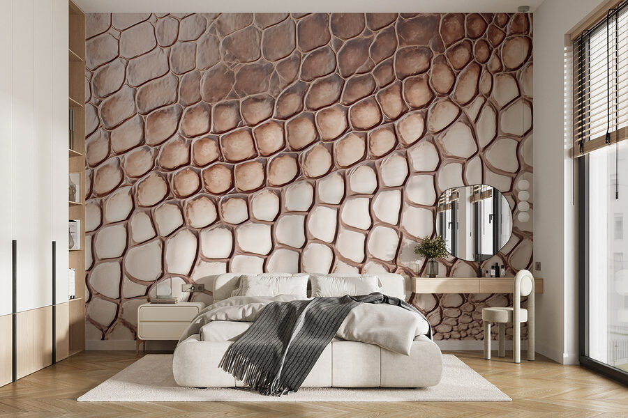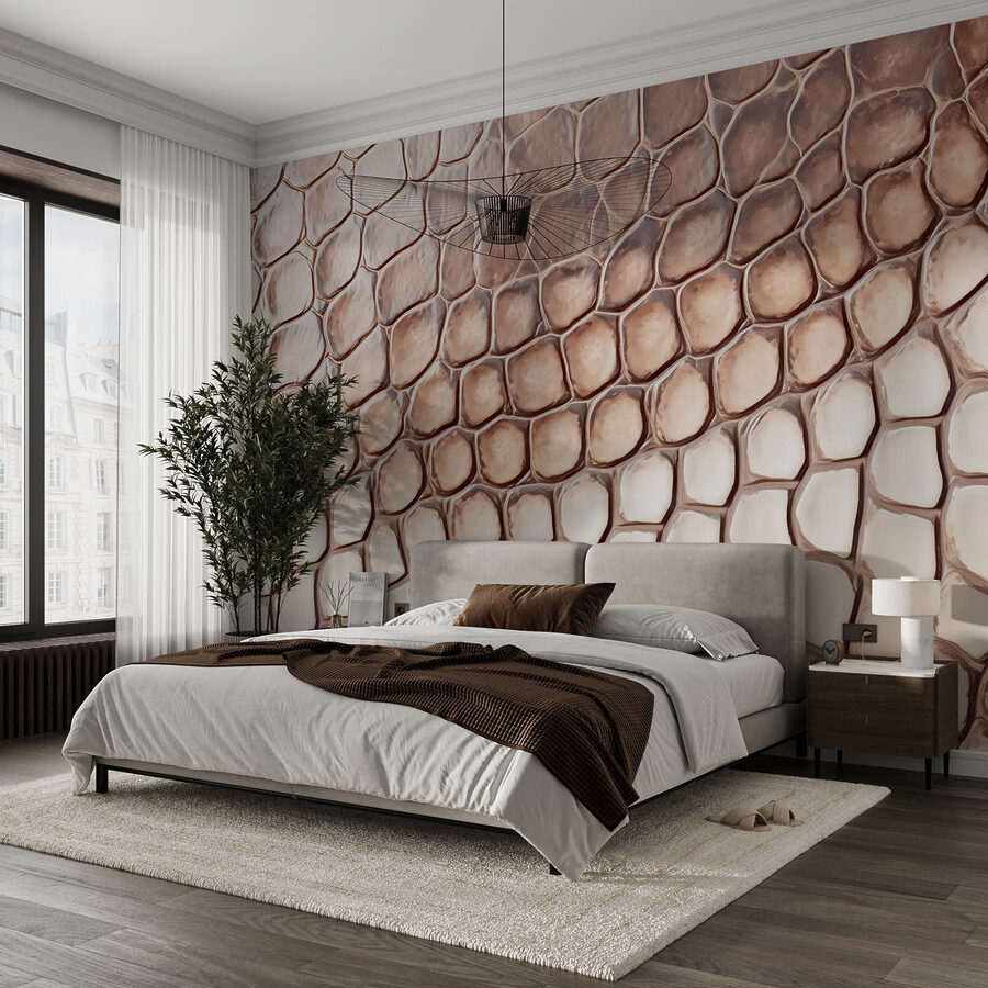 Verwandeln Sie Ihren Raum mit dieser kühnen und faszinierenden Fototapete mit Reptilienhautmuster. Stellen Sie sich vor, Sie betreten einen Raum, der ein wenig wild und doch überraschend gemütlich wirkt. Dieses Design verleiht den Wänden ein unerwartetes Flair und lässt sie vor Persönlichkeit strahlen. Es eignet sich perfekt für eine Wand in einem Wohnzimmer oder sogar für einen kreativen Arbeitsbereich und lädt zu neugierigen Blicken und Komplimenten ein.