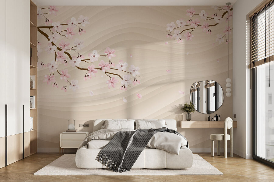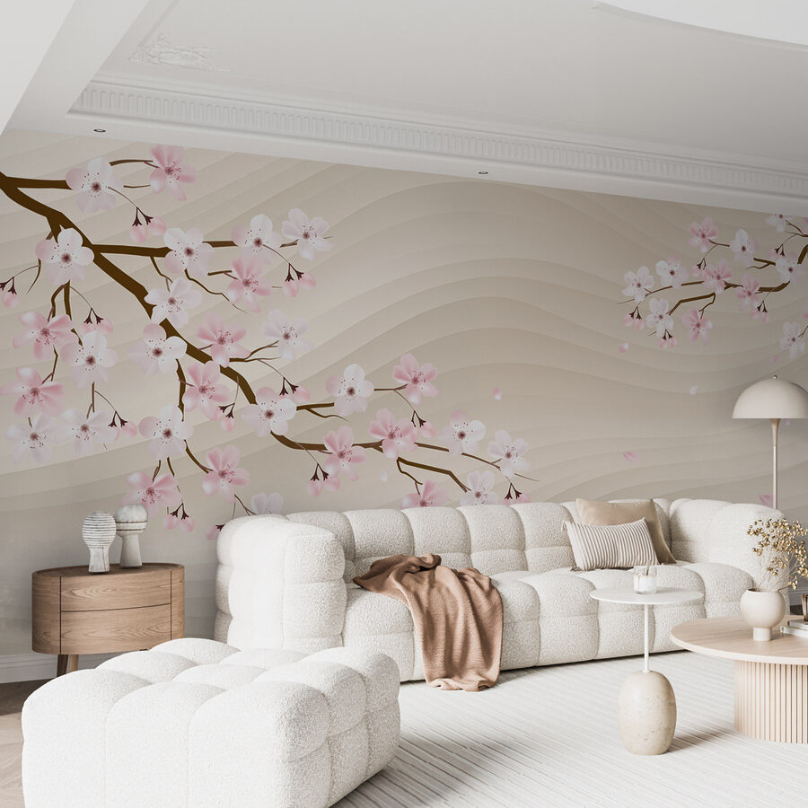 Verwandeln Sie jeden Raum in einen ruhigen Rückzugsort mit dieser charmanten Fototapete, die einen mit zarten weißen und rosafarbenen Blumen geschmückten Baumzweig zeigt. Stellen Sie sich vor, Sie betreten Ihr Zimmer und spüren sofort eine sanfte Brise und den zarten Duft des Frühlings – dieses Wandbild bringt diese beruhigende Stimmung direkt an Ihre Wände. Der fließende Hintergrund verleiht dem Bild Tiefe, so dass man das Gefühl hat, in einen ruhigen japanischen Garten zu blicken, dessen Blütenblätter im Wind tanzen. Perfekt für Wohnzimmer, Schlafzimmer oder sogar eine gemütliche Leseecke, schafft es eine einladende Atmosphäre, die zum Verweilen einlädt. Wer würde an einem so friedlichen Ort nicht gerne ein wenig länger verweilen?