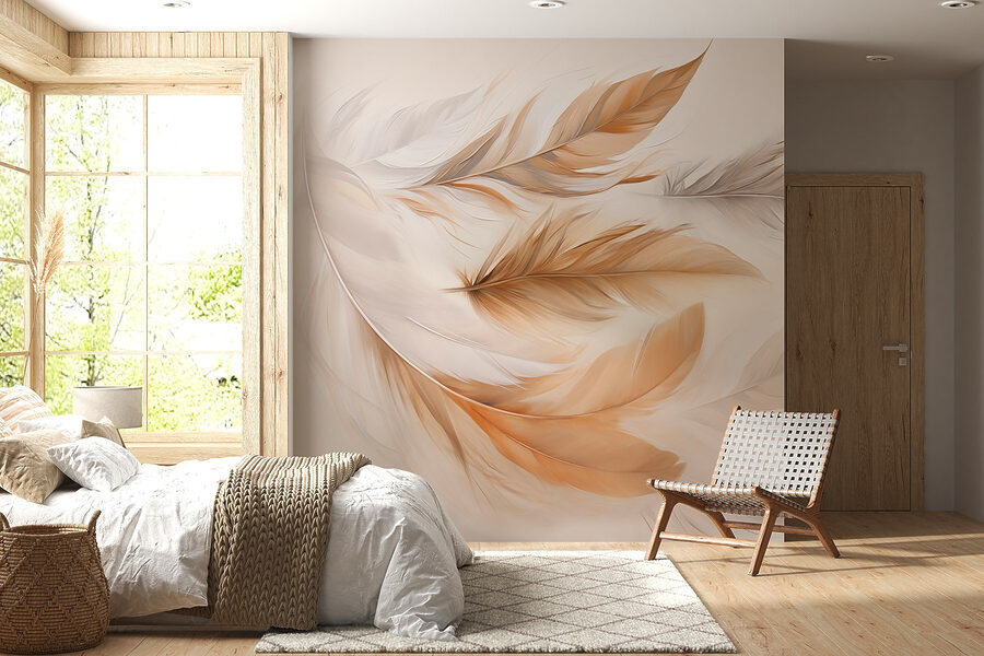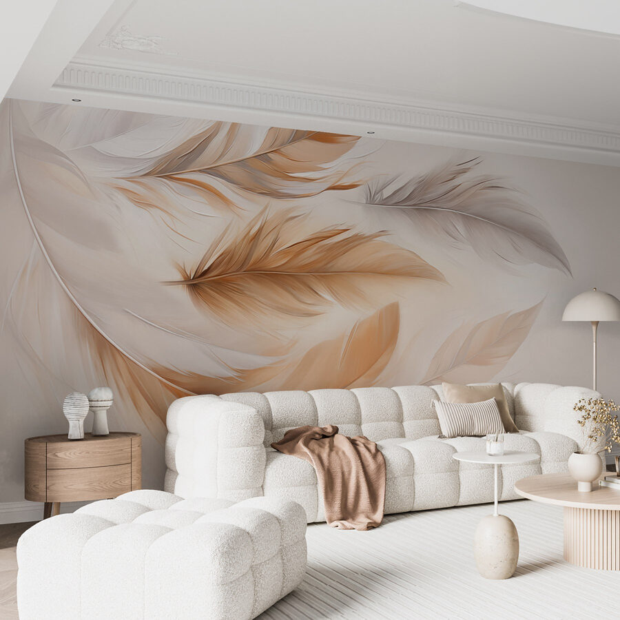 Verwandeln Sie Ihren Raum mit der sanften Anmut des Wandbildes “Group of Feathers”. Stellen Sie sich eine gemütliche Ecke vor, in der diese zarten Federn in sanften, warmen Farbtönen mühelos über die Wand schweben und einen Hauch von Laune und Ruhe verbreiten. Es ist, als hätte man einen gefiederten Freund, der einem süße Dinge ins Zimmer flüstert!