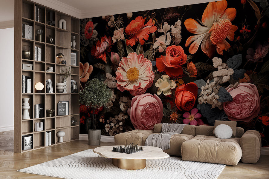 Verwandeln Sie jeden Raum mit dieser atemberaubenden Fototapete, die eine lebhafte Gruppe von Blumen vor einem satten schwarzen Hintergrund zeigt. Stellen Sie sich vor, Sie betreten jeden Tag ein gemütliches Café oder einen schönen Garten, direkt in Ihrem Zuhause. Spüren Sie, wie diese Farbenpracht und das Leben Ihre Stimmung heben, während Sie sich durch Ihren Raum bewegen. Dieses Wandbild ist nicht nur Dekoration, es ist wie ein fröhlicher Freund, der jeder Wand Wärme und Persönlichkeit verleiht. Perfekt für ein Wohnzimmer oder einen Essbereich, lädt es zu endlosen Komplimenten und neugierigen Blicken ein. Entfesseln Sie Ihren inneren Künstler mit einem Hauch von floralem Zauber!