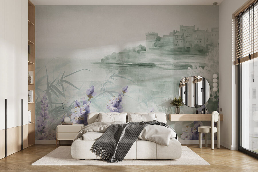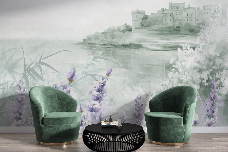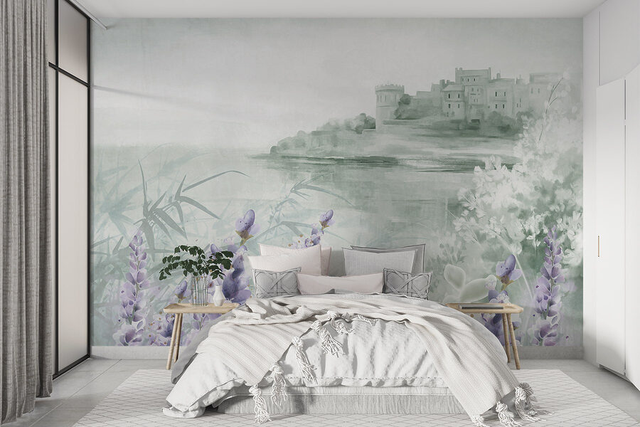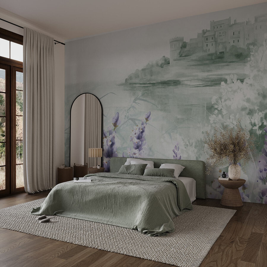 Verwandeln Sie jeden Raum mit dieser verträumten Aquarellwandmalerei, die ein bezauberndes Schloss und zarte Blumen zeigt. Stellen Sie sich vor, Sie betreten einen Raum, der sich wie eine heitere Flucht anfühlt, in dem sanfte Lavendeltöne und zarte Grüntöne eine ruhige Atmosphäre schaffen. Es ist, als würden die Wände Poesie flüstern und zu Tagträumen von Abenteuern in einem verwunschenen Garten einladen. Egal, ob es eine gemütliche Leseecke erhellt oder einen Hauch von Laune in ein Familienzimmer bringt, dieses Wandbild bringt einen Hauch von natürlicher Schönheit ins Haus. Es ist Kunst, die sich lebendig anfühlt, die Freude und Kreativität weckt und die Sie jedes Mal zum Lächeln bringt, wenn Sie vorbeigehen. Wer hätte gedacht, dass Dekoration wie ein Hauch von frischer Luft sein kann?