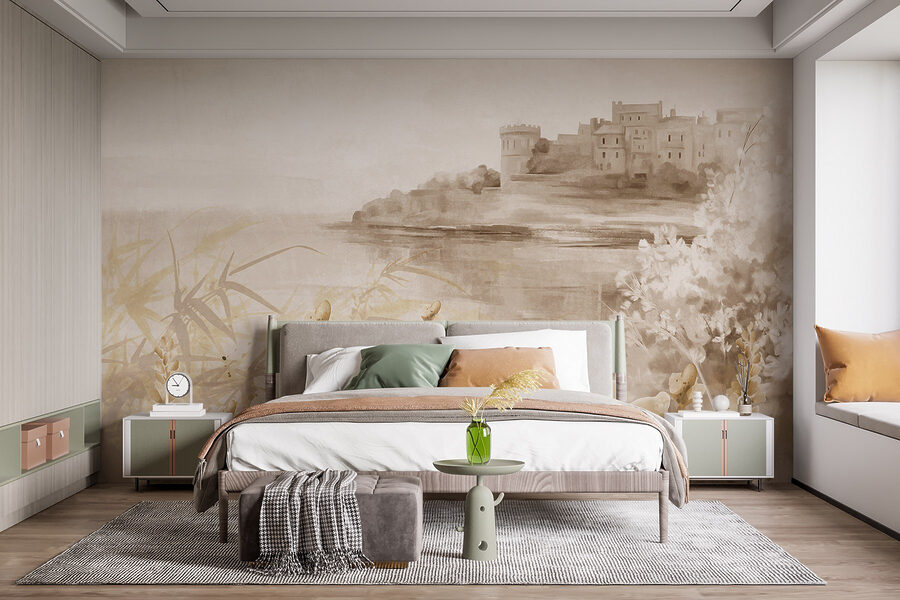 Stellen Sie sich vor, dass Sie direkt von Ihrem Wohnzimmer aus in eine heitere Welt eintauchen. Dieses Wandbild, das ein verträumtes Schloss an einem ruhigen See zeigt, bringt einen Hauch von Laune in jeden Raum. Die sanften Farbtöne fügen sich nahtlos in die sanften Umrisse der Natur ein und vermitteln ein beruhigendes Gefühl – wie ein offenes Feld an einem faulen Nachmittag. Stellen Sie sich gemütliche Abende vor, an denen Sie dieses Kunstwerk bewundern, während Sie an Ihrem Lieblingstee nippen und Ihre Gedanken an neblige Morgen am Seeufer schweifen lassen. Es ist, als würde man ein kleines Stück Märchencharme ins Haus holen, perfekt, um die Fantasie anzuregen und ein warmes, gemütliches Gefühl in jedem Raum zu erzeugen. Ob als Kulisse für Familientreffen oder als ruhiger Ort zum Träumen – dieses Wandbild macht alles mit und wertet Ihre Einrichtung mühelos auf.