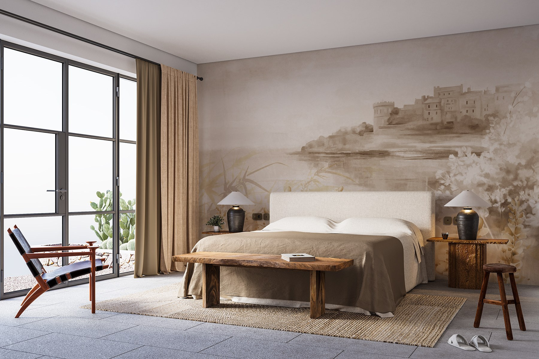 Stellen Sie sich vor, dass Sie direkt von Ihrem Wohnzimmer aus in eine heitere Welt eintauchen. Dieses Wandbild, das ein verträumtes Schloss an einem ruhigen See zeigt, bringt einen Hauch von Laune in jeden Raum. Die sanften Farbtöne fügen sich nahtlos in die sanften Umrisse der Natur ein und vermitteln ein beruhigendes Gefühl – wie ein offenes Feld an einem faulen Nachmittag. Stellen Sie sich gemütliche Abende vor, an denen Sie dieses Kunstwerk bewundern, während Sie an Ihrem Lieblingstee nippen und Ihre Gedanken an neblige Morgen am Seeufer schweifen lassen. Es ist, als würde man ein kleines Stück Märchencharme ins Haus holen, perfekt, um die Fantasie anzuregen und ein warmes, gemütliches Gefühl in jedem Raum zu erzeugen. Ob als Kulisse für Familientreffen oder als ruhiger Ort zum Träumen – dieses Wandbild macht alles mit und wertet Ihre Einrichtung mühelos auf.