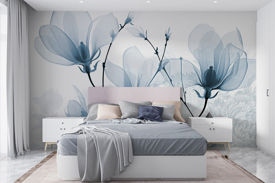 Verwandeln Sie eine trübe Wand in einen verträumten Rückzugsort mit dieser wunderschönen Fototapete mit zarten Blüten in sanften Farbtönen. Stellen Sie sich vor, Sie betreten einen Raum, der sich wie ein sanfter Garten anfühlt, in dem der leiseste Windhauch Geheimnisse zu flüstern scheint. Es ist, als hätte man ein Stück Natur im Haus, nur ohne Bienen und Niesanfälle.