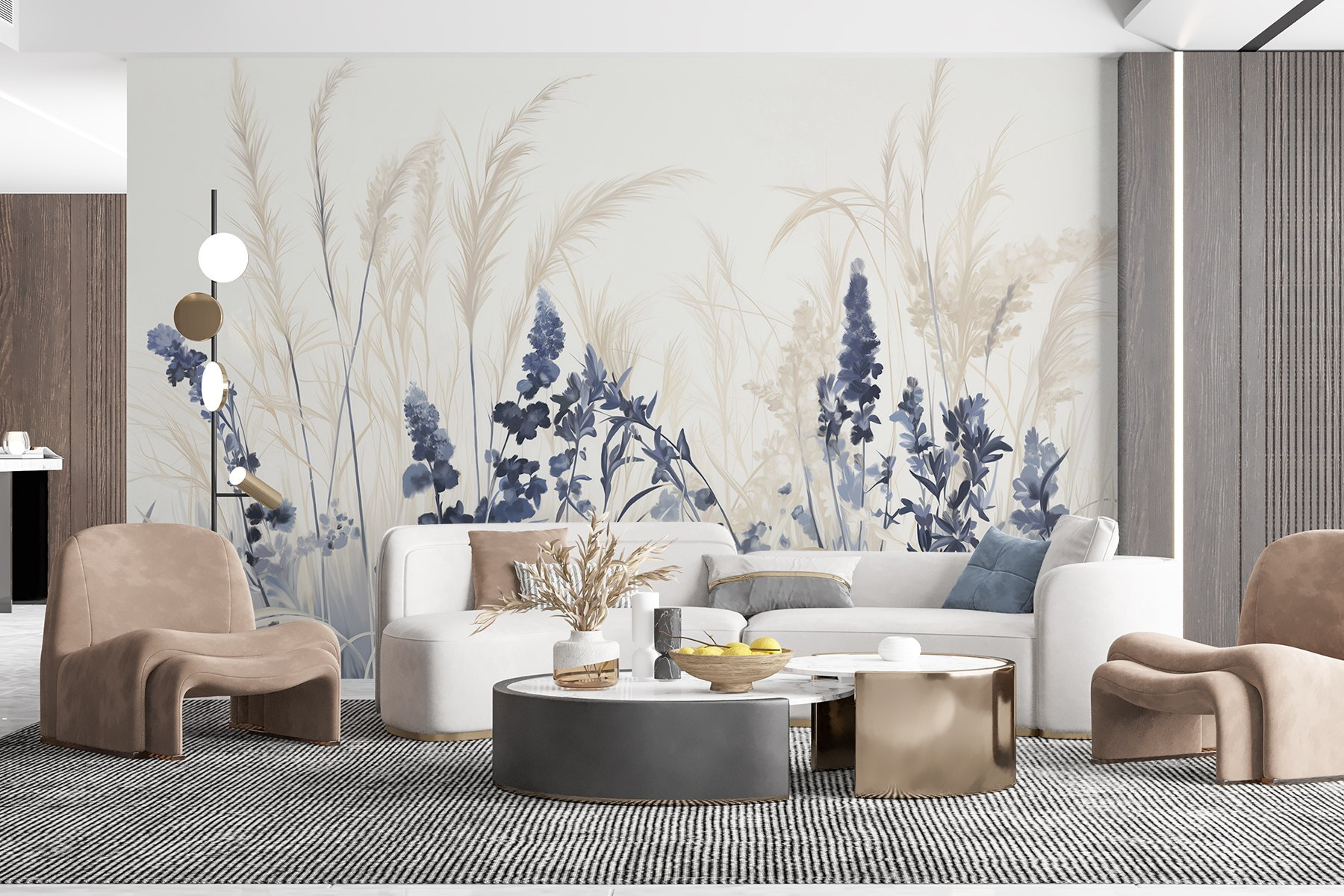 Verwandeln Sie Ihren Raum mit dieser bezaubernden Fototapete mit Blumen und Gräsern in eine heitere Oase. Stellen Sie sich vor, dass Sie jedes Mal, wenn Sie den Raum betreten, einen verträumten Garten betreten. Die weichen, fließenden Farben schaffen eine ruhige Atmosphäre, die perfekt ist, um sich nach einem langen Tag zu entspannen. Stellen Sie sich vor, Sie schlürfen einen Tee, während Sie die zarten Blüten betrachten, die sich sanft in einer Brise wiegen, die nur in Ihrer Vorstellung existiert. Es ist, als hätte man die Schönheit der Natur direkt an der Wand und ließe ein wenig von der Außenwelt herein. Ob in einer gemütlichen Ecke oder in einem belebten Wohnzimmer, die schlichte Eleganz dieses Wandbildes verleiht Ihrem Raum das gewisse Etwas und macht ihn zu etwas Einzigartigem. Ein einziger Blick genügt, um Sie an einen ruhigen Nachmittag auf einer sonnenbeschienenen Wiese zu entführen – und das ganz ohne schickes Schuhwerk!