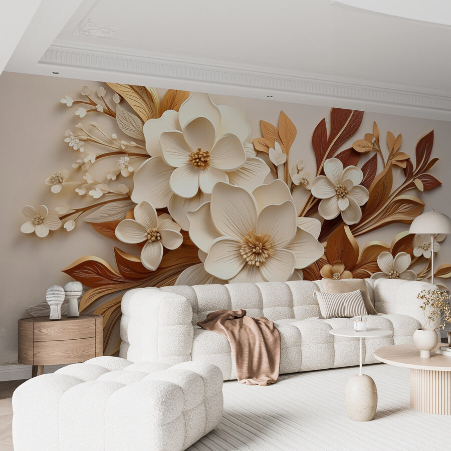 Verwandeln Sie jeden Raum mit dieser charmanten Fototapete, die eine reizvolle Mischung aus weißen und braunen Blumen zeigt. Stellen Sie sich vor, Sie betreten einen Raum, der mehr an einen sonnenbeschienenen Garten als an eine Wand erinnert. Das Design strahlt Wärme und Gemütlichkeit aus – perfekt für die Ecke, in der man es sich mit einem guten Buch gemütlich macht oder einen Kaffee trinkt, während man träumt. Jedes Blütenblatt und jedes Blatt spielt schön zusammen und schafft einen sanften Blickpunkt, der zu Gesprächen einlädt. Können Sie sich wirklich vorstellen, wie Ihre Gäste es bewundern? Es ist, als hätten Sie ein Stück Natur in Ihrem Haus, nur ohne die Pollen.