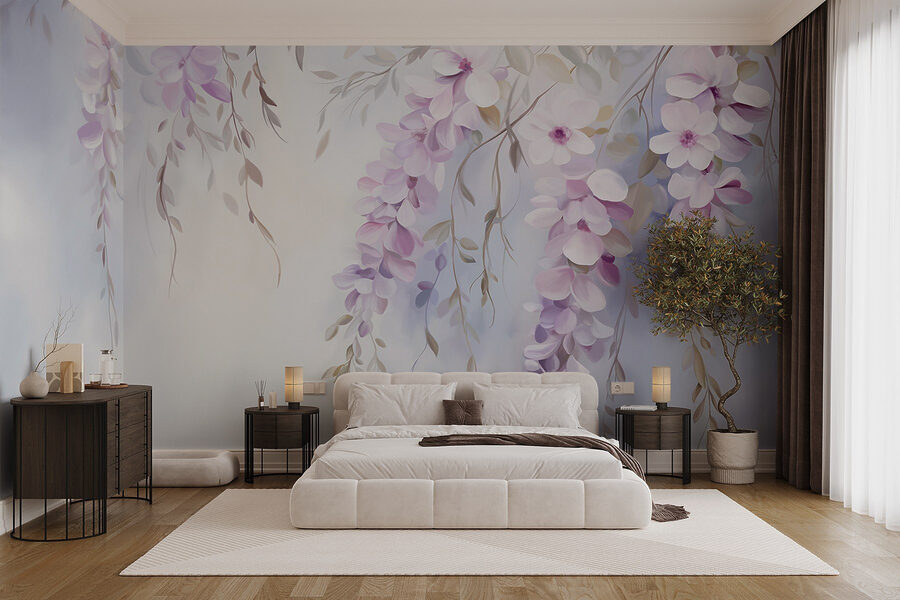 Verwandeln Sie jeden Raum mit dieser atemberaubenden Fototapete mit Blumen auf einem Zweig. Es ist, als hätten Sie einen entspannenden Garten direkt in Ihrem Wohnzimmer – nur ohne die lästigen Pollen. Die zarten Blütenblätter und die sanften Farbtöne schaffen eine beruhigende Atmosphäre, perfekt für gemütliche Nachmittage mit einem guten Buch oder spontane Tanzpartys in Ihrer Küche. Stellen Sie sich vor, wie Ihre Freunde zu Ihnen nach Hause kommen und ihre Augen beim Anblick dieser zarten Blüten vor Freude leuchten. Es geht darum, eine Atmosphäre zu schaffen, und das gelingt diesem Wandbild mühelos, indem es Wärme und einen Hauch von Natur in den Alltag einlädt.
