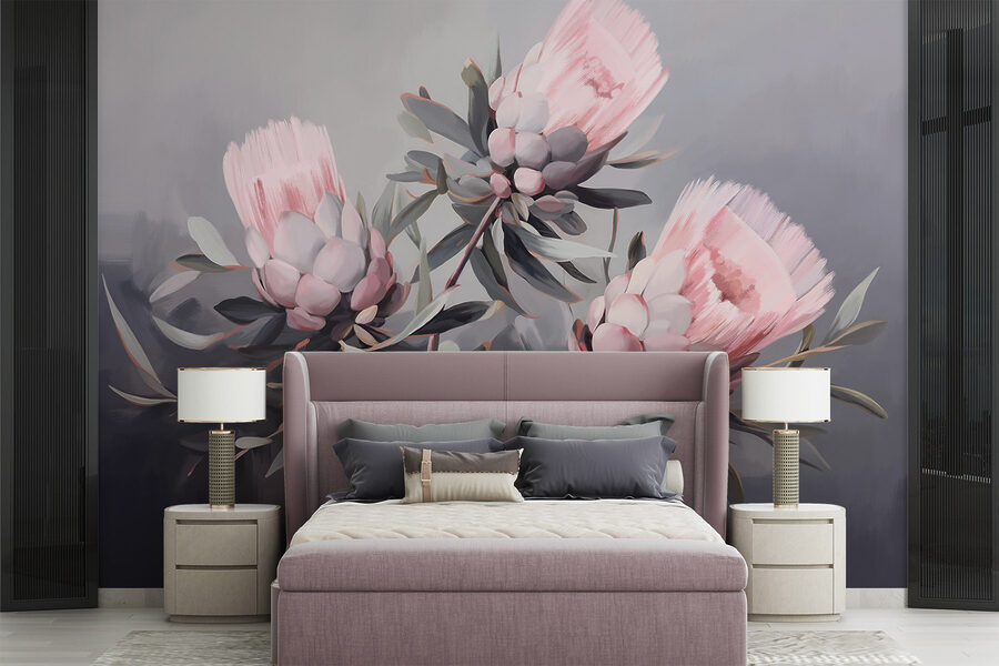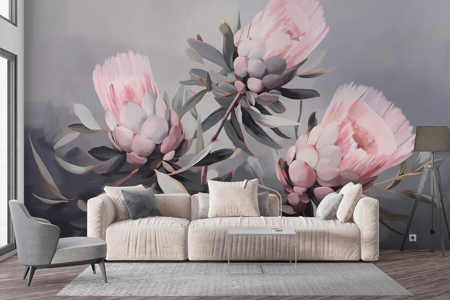 Verwandeln Sie jeden Raum mit dieser bezaubernden Fototapete mit rosafarbenen Blumen, die in sanften Rot-Tönen vor einem beruhigenden Hintergrund tanzen. Es ist, als ob man sich einen Garten ins Haus holt, ohne die lästigen Pollen. Stellen Sie sich vor: eine gemütliche, in warmes Licht getauchte Leseecke, in der man einen Tee schlürfen und sich in ein Buch vertiefen kann – mit Blumen, die von den Wänden lugen und der Atmosphäre einen Hauch von natürlicher Schönheit verleihen. Ideal für alle, die ihren Raum aufwerten und ein Gefühl der Ruhe hervorrufen wollen. Es ist nicht nur eine Wandmalerei, sondern erzählt eine kleine Geschichte, die den Alltag verschönert. Perfekt für die gemütlichen Tage zu Hause!
