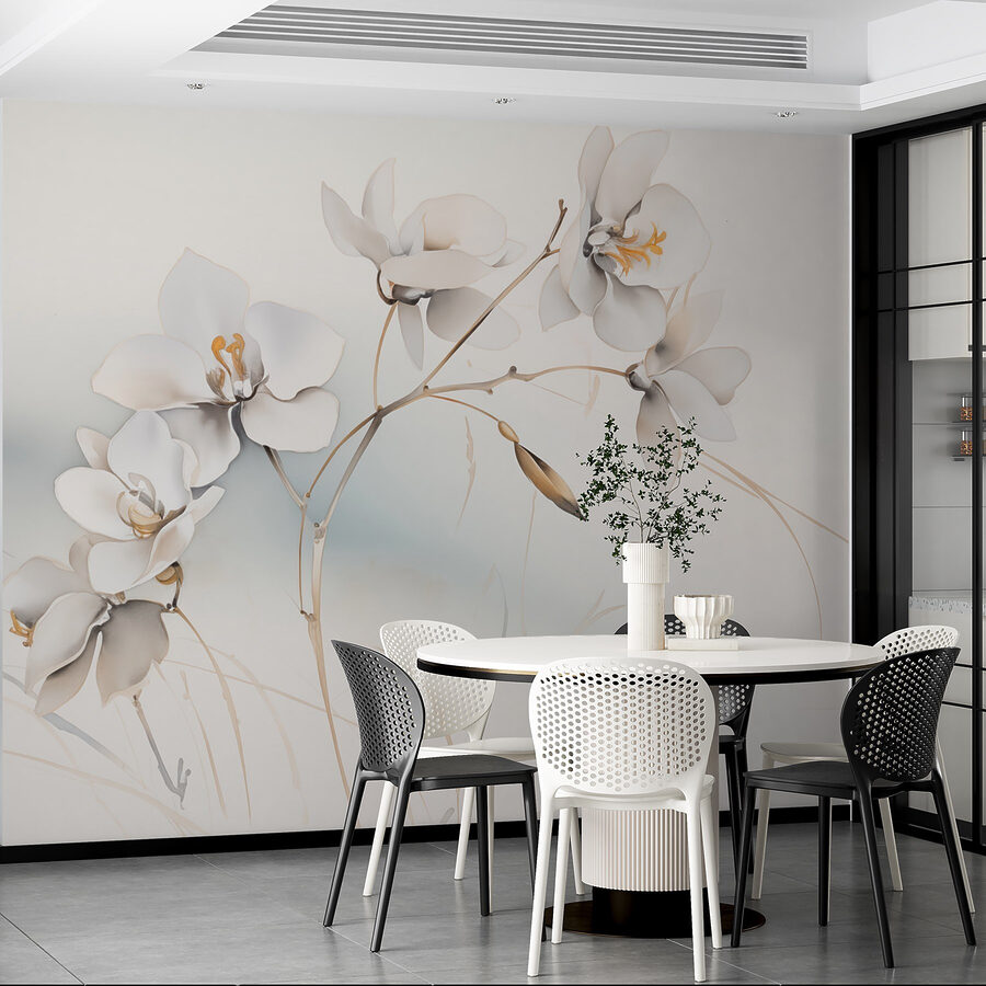 Verändern Sie jeden Raum mit dieser atemberaubenden Fototapete mit zarten weißen Blumen, die anmutig auf Zweigen thronen. Stellen Sie sich vor, Sie betreten einen Raum, der sofort ruhiger und einladender wirkt. Die sanfte Farbpalette schafft eine ruhige Atmosphäre, die perfekt ist, um sich nach einem langen Tag zu entspannen. Stellen Sie sich gemütliche Abende vor, während Sie diese Blüten betrachten, als ob sie ein Stück Natur ins Haus bringen würden. Es ist, als hätte man einen eigenen Garten, nur ohne Gießkanne und gelegentliches Ungeziefer. Eine perfekte Kulisse für künstlerische Momente, herzliche Gespräche oder einfach nur zum Träumen. Holen Sie sich einen Hauch von blumigem Charme nach Hause.