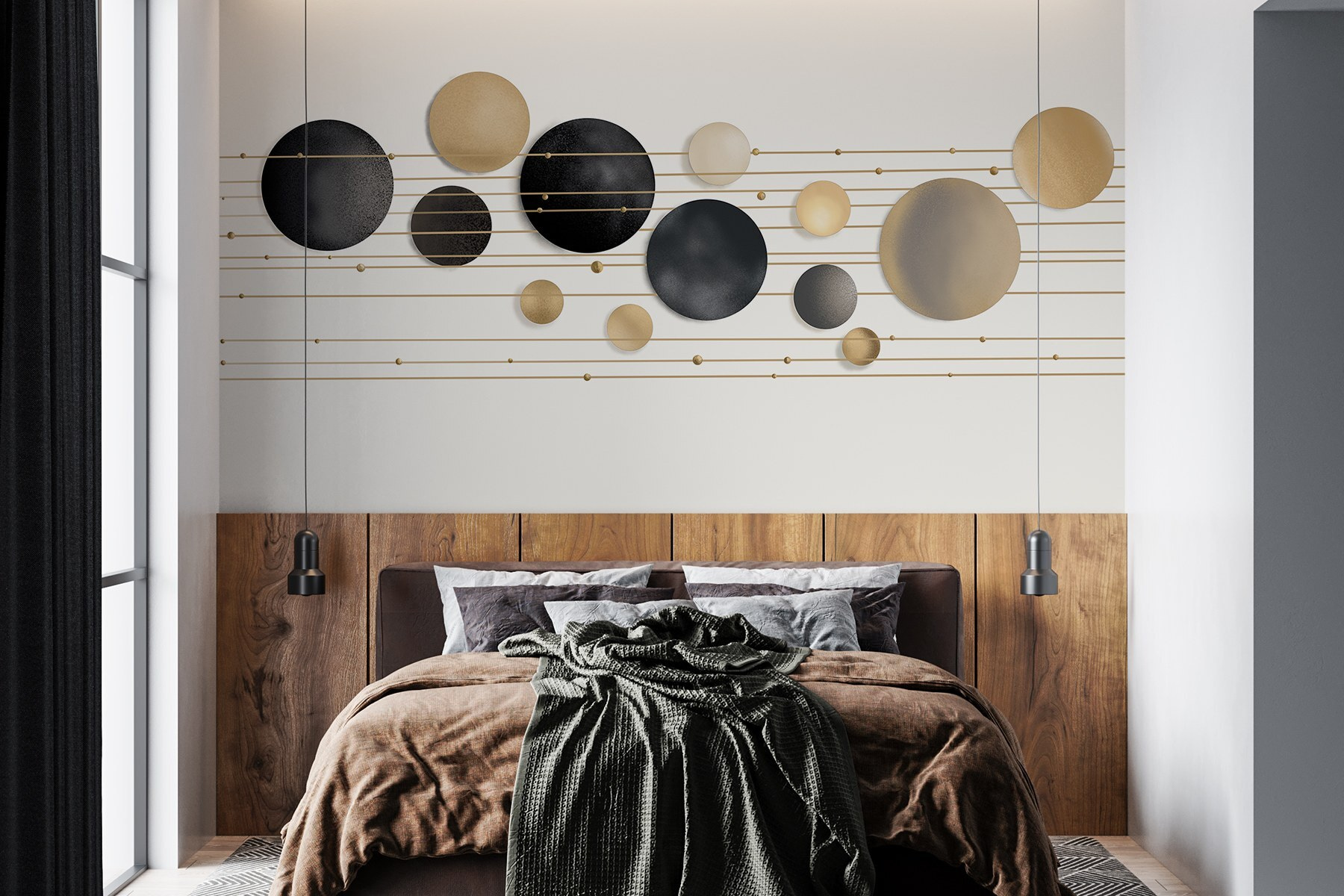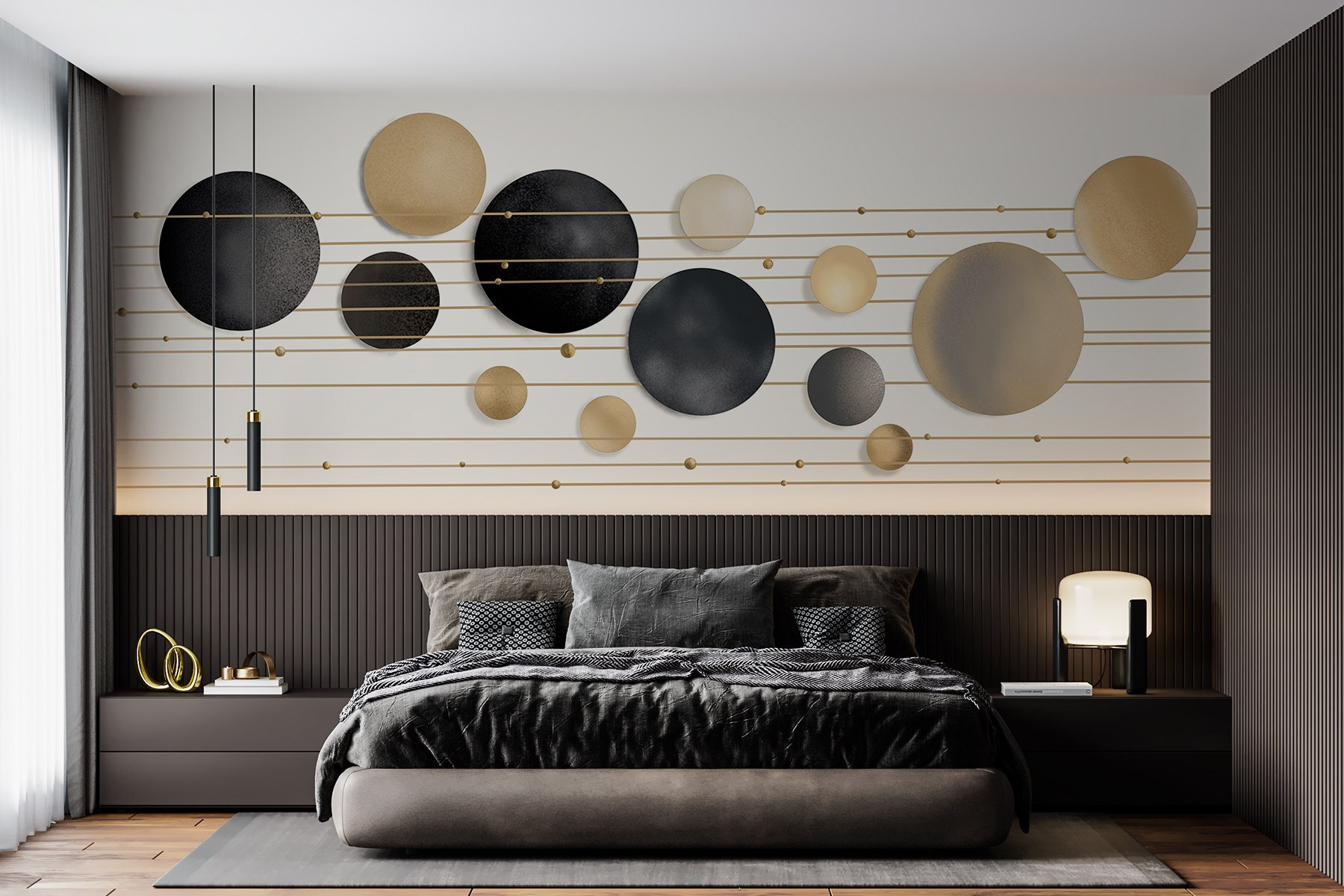 Gestalten Sie Ihren Raum auf eine Weise, die Freude macht! Diese Fototapete mit einer verspielten Mischung aus Kreisen und Linien verleiht Ihrem Raum ein künstlerisches Flair, das jeden zum Staunen bringen wird. Es ist, als hätten Sie ein modernes Kunstwerk direkt an der Wand – perfekt für gemütliche Wohnzimmer oder schicke Büros, die ein wenig Persönlichkeit brauchen. Stellen Sie sich vor, Ihre Gäste kommen herein, werfen einen Blick auf das Wandbild und sagen: “Wow, das ist ein echter Hingucker!” Die Mischung der Formen erzeugt einen Rhythmus, bei dem man sich fast wie bei einem Tanz fühlen kann. Es ist subtil und doch auffallend – ein visueller Genuss, der Wärme ausstrahlt, ohne zu aufdringlich zu sein. Perfekt für jeden, der in einem Hauch von Laune schwelgt!