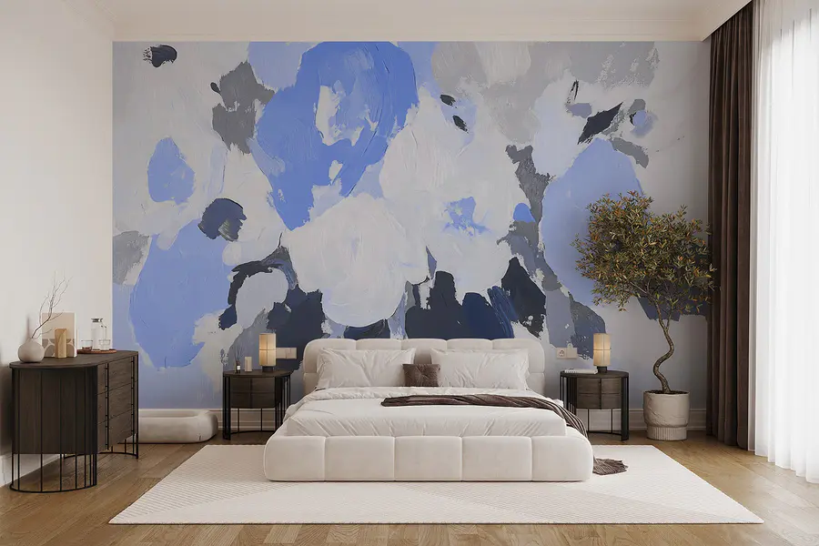 Verwandeln Sie jeden Raum mit dieser bezaubernden Fototapete mit Blumen in beruhigenden Blau- und Grautönen. Es ist, als ob man sich ein Stück Himmel ins Haus holt, eingepackt in eine weiche, verträumte Umarmung. Stellen Sie sich vor, Sie wachen jeden Morgen mit diesem hübschen Kunstwerk auf – diese Blüten könnten selbst die mürrischste Katze aufmuntern.