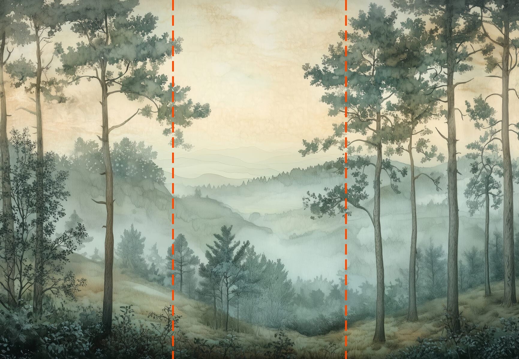 Fototapeten Gemälde eines Waldes mit Nebel