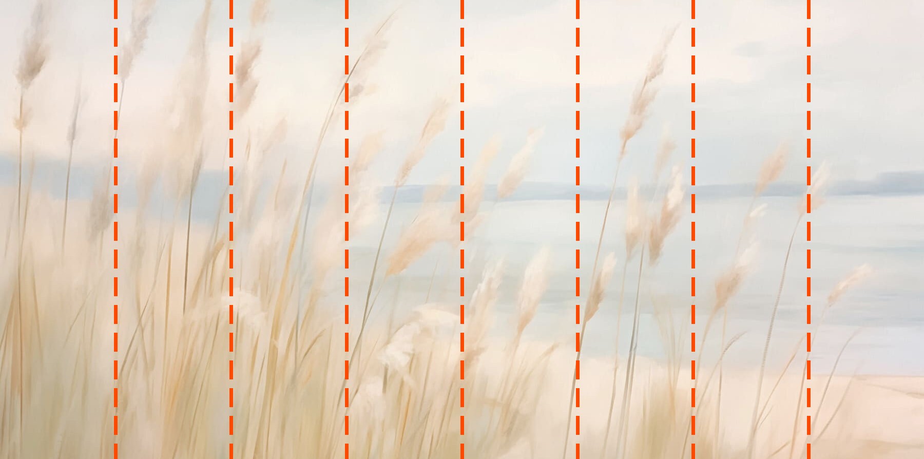 Fototapeten Hohes Gras mit einem Gewässer im Hintergrund