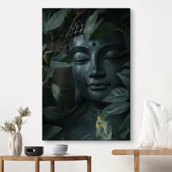 Wandbilder Statue eines von Blättern umgebenen Gesichts einer Person