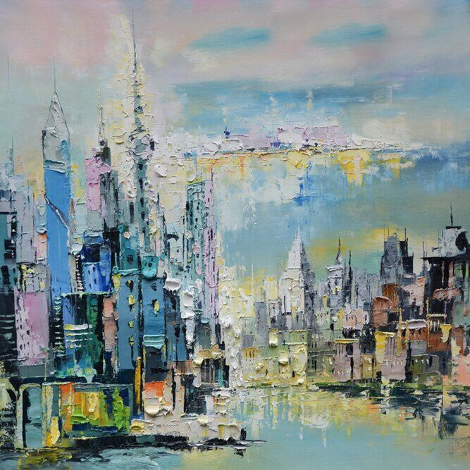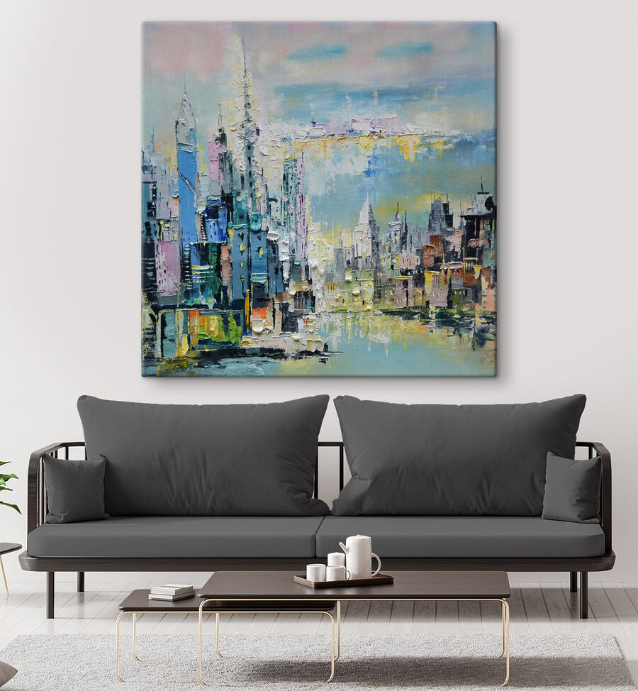 Dieser Leinwanddruck ist wie eine verträumte Stadtlandschaft. Es hat diese Pastelltöne, die jeden Raum ein wenig magischer erscheinen lassen – als würde die Skyline Ihnen süße Worte zuflüstern. Stellen Sie sich das Bild an Ihrer Wohnzimmerwand vor, wo es sofort zu Gesprächen über verträumte Architektur und ferne Stadtabenteuer anregt. Es hat einen abstrakten Charme, fast so, als würde es dich auffordern, in die gemalten Straßen zu springen. Perfekt für die Tage, an denen Sie sich nach einem Hauch von urbanem Wunder sehnen, ohne das Haus zu verlassen.