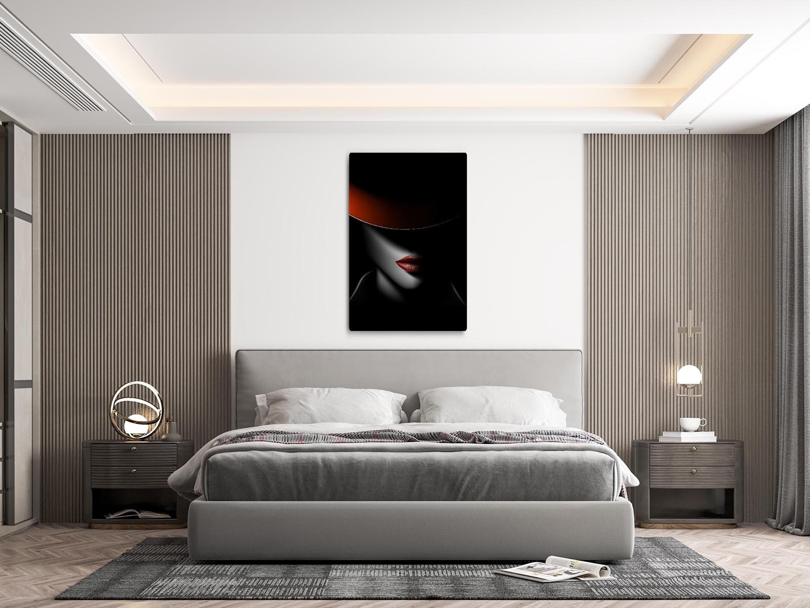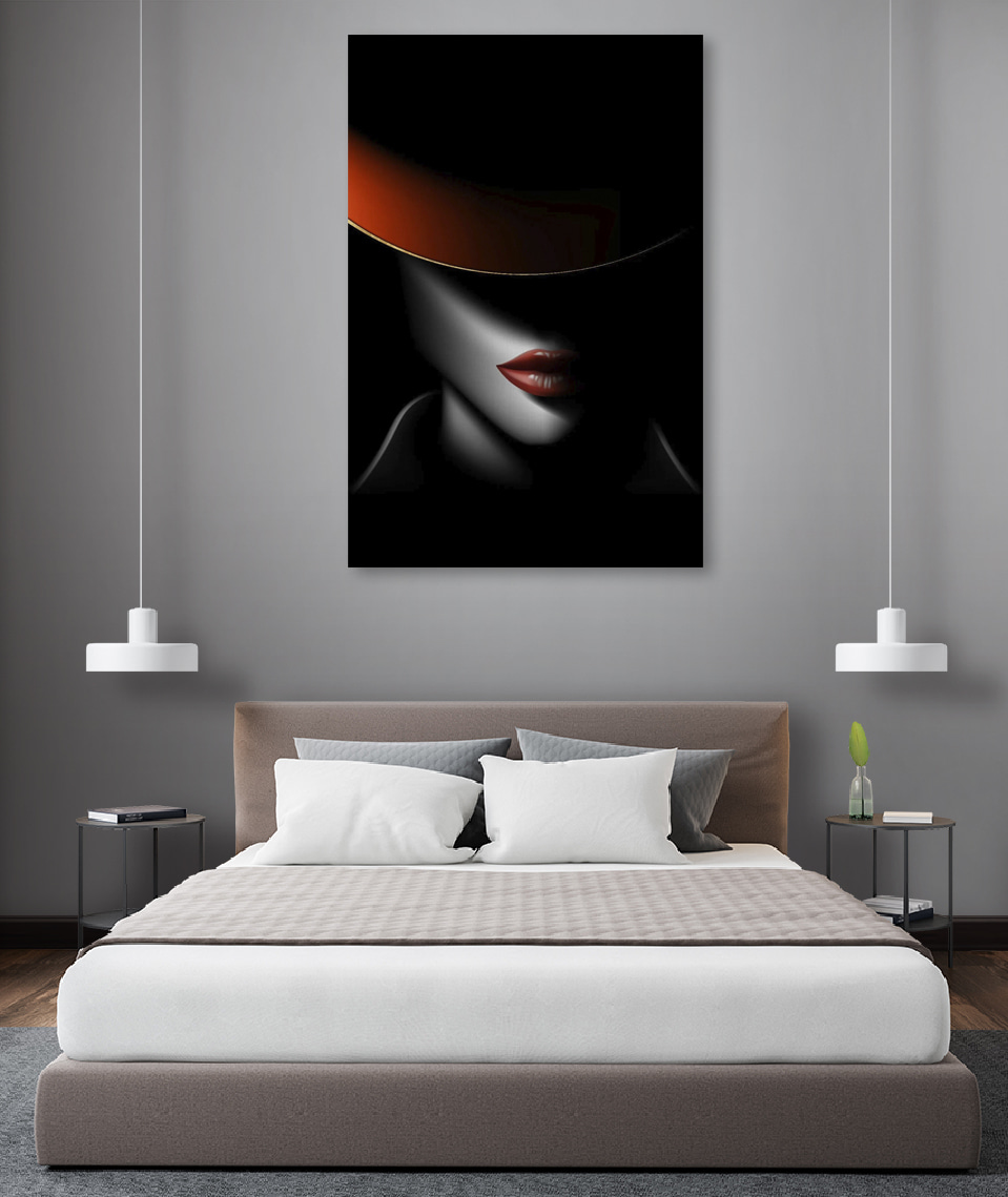 Leinwanddrucke “Geheimnisvolle Anziehungskraft unter einem schattigen Hut” ist wie ein Magnet für Intrigen. Stellen Sie sich das vor: ein halb im Schatten verborgenes Gesicht, die Lippen in einem kräftigen, satten Rot, das unter einem breiten, dunklen Hut hervorlugt. Es ist wie das Flüstern eines Geheimnisses, das man nicht ganz hören kann, aber unbedingt wissen möchte. Perfekt für ein Schlafzimmer oder einen Wohnbereich, verleiht dieses Stück einen Hauch von Geheimnis und Eleganz. Im Ernst, es hat etwas von einem Film Noir, als würde man in eine alte Schwarz-Weiß-Filmszene eintauchen. Ein bisschen Drama, viel Verlockung – es ist ein Gesprächsanlass, und glauben Sie mir, jeder wird die Geschichte hinter diesen rätselhaften Lippen wissen wollen.