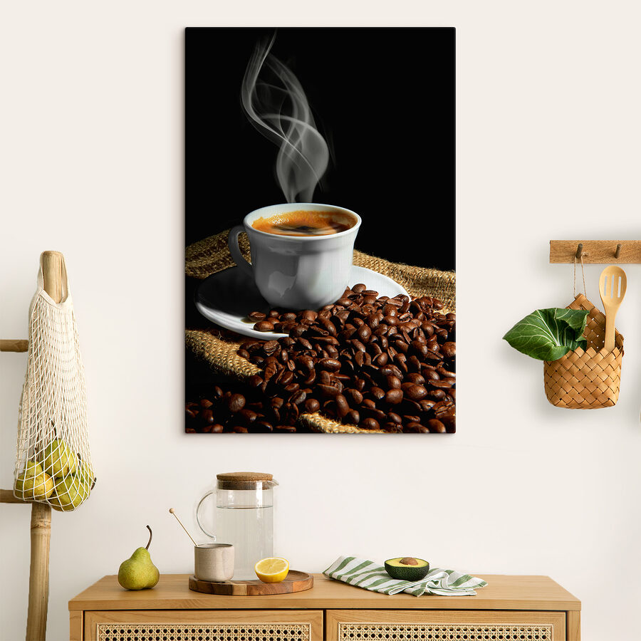 Stellen Sie sich einen faulen Sonntagmorgen vor, der Duft von frisch gebrühtem Kaffee umhüllt Sie wie eine warme Umarmung. “Wandbilder Cup of Coffee and Coffee Beans” bringt dieses Gefühl direkt an Ihre Wand. Im Ernst, sehen Sie sich diesen Dampf an! Man kann fast das leise Summen eines Cafés im Hintergrund hören. Perfekt für jeden Kaffeeliebhaber – es ist wie ein kleines Stück Ihres morgendlichen Lieblingsrituals, das für immer festgehalten wird.