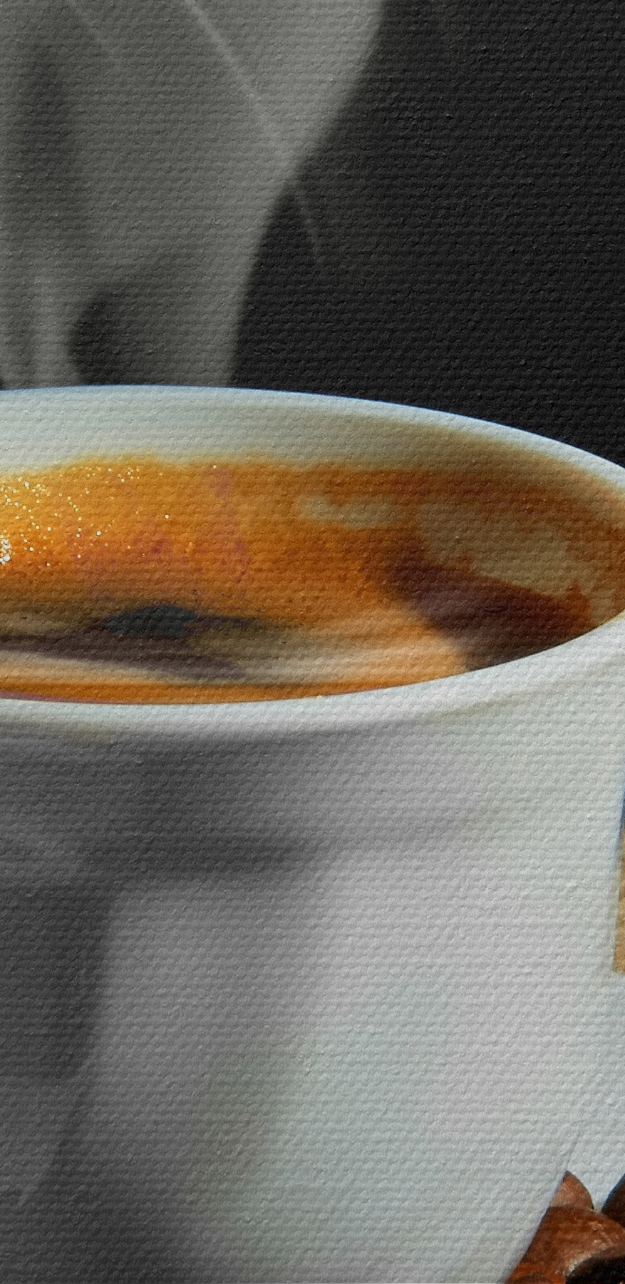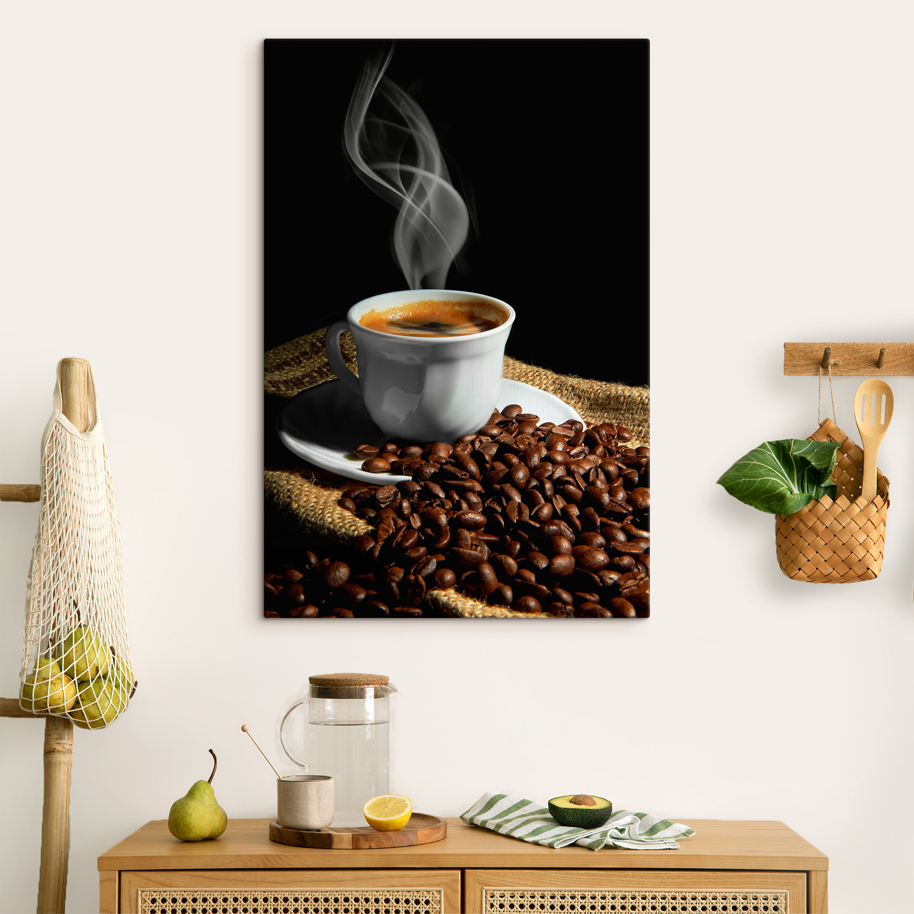 Dieser Druck passt in jede Küche oder gemütliche Ecke und verleiht eine beruhigende Atmosphäre, die jeden Schluck wie eine kleine Flucht erscheinen lässt. Die satten Farbtöne und die einladenden Bohnen rund um die Tasse laden geradezu zu einem gemütlichen Gespräch mit Freunden ein. Sind Sie bereit, Ihre Wände noch mehr zu lieben? Stellen Sie dieses bezaubernde Stück in den Raum und beobachten Sie, wie es zum Mittelpunkt wird, über den jeder spricht. Eine tägliche Dosis Ruhe, heiß serviert, direkt an Ihrer Wand!